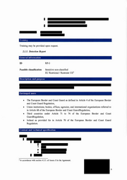 Training Training may be provided upon request. 2.1.3. Detection Report G e n e r a l i n fo r m a t i o n ID RP-3 Possible classification Sensitive non-classified 5 EU Restricted / Restreint UE Description a n d p u r p o s e E n v i s a g e d users • The European Border and Coast Guard as defined in Article 4 of the European Border and Coast Guard Regulation, • Union institutions, bodies, offices, agencies, and international organisations referred to in Article 68 of the European Border and Coast GuardRegulation, • Third countries under Article 71 to 74 of the European Border and Coast GuardRegulation, • Ireland as provided for in Article 70 of the European Border and Coast Guard Regulation. C o n t e n t a n d t e c h n i c a l specification 5 In accordance with section 4 .3 .3 . of Annex II to the Agreement. 9