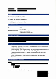 T ra i n i n g No training is required for this product. 2.3. Digital and interactive products (DP) 2.3.1. Dynamic and Interactive Map G e n e r a l i n fo r m a t i o n ID DP-1 Non-classified Possible classification Sensitive non-classified EU Restricted / Restreint UE!' Description a n d p u r p o s e Envisaged users • The European Border and Coast Guard as defined in Article 4 of the European Border and Coast Guard Regulation, • Union institutions, bodies, offices, agencies, and international organisations referred to in Article 68 of the European Border and Coast Guard Regulation, • Third countries under Article 7 1 to 74 of the European Border and Coast Guard Regulation, • Ireland as provided for in Article 70 of the European Border and Coast Guard Regulation. C o n t e n t a n d t e c h n ic a l s p e c i fi c a t i o n In accordance with section 4 . 3 . 3 . of Annex II to the Agreement. 26