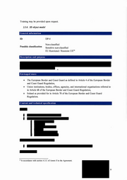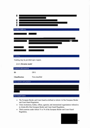 Training may be provided upon request. 2.3.4. 3D object model G e n e ra l i n fo r m a t i o n ID DP-4 Non-classified Possible classification Sensitive non-classified EU Restricted / Restreint UE! Description and purpose Envisaged users • The European Border and Coast Guard as defined in Article 4 of the European Border and Coast Guard Regulation, • Union institutions, bodies, offices, agencies, and international organisations referred to in Article 68 of the European Border and Coast Guard Regulation, • Ireland as provided for in Article 70 of the European Border and Coast Guard Regulation. C o n t e n t a n d t e c h n i c a l s p e c i fi c a t i o n • In accordance with section 4 . 3 . 3 . of Annex I to the Agreement. 31