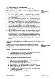 4.2 Aufforderung zur Kostensenkung 4.2.1 Verfahren bei Überschreitung der Richtwerte Überschreiten die tatsächlichen Kosten die dargestellten Richtwer- 4.30 te, ist wie folgt vorzugehen: Kostensenkungs- verfahren Die Kosten fließen zunächst in tatsächlicher Höhe in die Ab- rechnung ein bis geklärt ist, ob wirklich unwirtschaftliches Heiz- verhalten vorliegt. Die Leistungsberechtigten erhalten eine Anhörung mit einer Einladung zum Gespräch. Ihnen wird Gelegenheit eingeräumt, darzulegen, dass ein besonderer Heizbedarf gegeben ist. Das Ergebnis der Überprüfung ist in der Akte zu dokumentie- ren. Ggf. sind die Angaben der Antragsteller/innen zu überprü- fen, z.B. durch Einschaltung eines Ermittlungsdienstes. Wird ein höherer Heizbedarf plausibel gemacht, der die tatsäch- lichen Kosten rechtfertigt, bleibt es bei der Berücksichtigung dieser Kosten. Gibt es keine besonderen Gründe, die es rechtfertigen, den tat- sächlichen Verbrauch anzuerkennen, werden nach Ablauf von bis zu 6 Monaten in der Regel nur noch die angemessenen Kosten anerkannt. Die Leistungsberechtigten werden schriftlich darüber informiert, dass die Heizkosten unangemessen sind und die Kosten daher nicht in voller Höhe übernommen werden können. 4.2.2 Welche Gründe können eine Überschreitung der Richtwerte recht- fertigen? Soweit nicht schon bei der regionalen Festlegung der Richtwerte 4.36 berücksichtigt(!), können insbesondere folgende Aspekte berück- Besonderheiten des Einzelfalls sichtigt werden: Gründe in der Person der Leistungsberechtigten, z.B. Pflegebedürftigkeit, Behinderung, insbesondere wenn damit eine Bewegungseinschränkung verbunden ist, krankheitsbedingter erhöhter Wärmebedarf. Gründe bezogen auf das Haus/ die Wohnung, z.B. Lage des Hauses, der Wohnung, z.B. freistehend, unbeheiz- te Räume im angrenzenden Bereich Bauzustand der Wohnung, z.B. Baumängel Geschosshöhe, z.B. Altbauwohnung mit hohen Wänden Wärmeisolierung des Gebäudes und der Fenster, z.B. keine Isolierung, Einfachverglasung Wirkungsgrad und Wartungszustand der Heizungsanlage, z.B. alte Heizungsanlage, Witterung, z.B. besonders harter Winter Arbeitsempfehlung KdU Seite 40 von 92 Stand: 02.01.2019