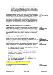zu legen, sofern nicht die Übernahme höherer Kosten im Einzelfall vorher zugesichert wurde. Sinn dieser Rege- lung ist es, einer Kostensteigerung durch Ausschöpfung der örtlichen Angemessenheitsgrenze ohne besonderen Umzugsgrund entgegen zu wirken. Bei unangemessenen Kosten für die neue Wohnung gilt, dass wei- 7.1.42 terhin die KdU für die alte Wohnung zugrunde zu legen sind, sofern KdU nicht angemes- sen nicht die Übernahme höherer Kosten im Einzelfall vorher zugesi- chert wurde. Dies gilt sowohl bei erforderlichen als auch bei nicht erforderlichen Umzügen. Waren auch die Kosten für die alte Woh- nung bereits unangemessen, ist anstelle der tatsächlichen bisheri- gen KdU ggf. die angemessene KdU, also der KdU-Richtwert, an- zusetzen. 7.1.5 Wesentliche Änderungen / Dynamisierung Die anerkannten KdU dürfen nicht dauerhaft auf einen bestimmten 7.1.50 Betrag (KdU-Richtwert bzw. KdU der bisherigen Wohnung) gede- Keine dauerhafte Deckelung ckelt werden. Nach der Rechtsprechung des Bundessozialgerichtes sind nachträgliche Veränderungen, die sich auf die Bestimmung der angemessenen Kosten der Unterkunft auswirken, zu berücksichti- gen. BSG, Urteil vom 17.2.2016, B 4 AS 12/15 R Ändert sich nach einem Umzug die Sach- oder Rechtslage, z.B. 7.1.51 durch Zuzug weiterer Personen oder Geburt eines Kindes, sind also Änderungen der Sach- und Rechtsla- entsprechend höhere Kosten zu berücksichtigen. ge Werden die KdU-Richtwerte neu festgelegt und erhöht, muss auch 7.1.52 der als angemessene KdU anerkannte Betrag korrigiert werden: Dynamisierung Bei Begrenzung auf KdU-Richtwert ist der entsprechende neue KdU-Richtwert zugrunde zu legen. Bei Begrenzung auf die KdU der alten Wohnung erfolgt die Anpassung mit dem gleichen Prozentsatz, um den sich die KdU-Richtwerte erhöht haben. Beispiel: Der KdU-Richtwert erhöht sich von 300 € auf 330 €, also um 10%. Die bisherigen KdU betrugen 250 €. Neu wären 10% mehr, also 275 € anzuerkennen. BSG, Urteil vom 29.04.2015 – B 14 AS 6/14 R Zu Unterbrechungen der Leistungsgewährung 7.1.53 Rz. 3.56 Unterbrechungen Arbeitsempfehlung KdU Seite 51 von 92 Stand: 02.01.2019
