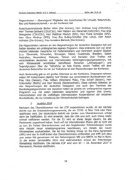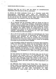 h atio B U ehn Berlin, de Abgeordneten — überwiegend Mitglieder des Ausschusses für Umwelt, Naturschutz, Bau und Reaktorsicherheit - an der Konferenz teil: Ausschussvorsitzende Bärbel Höhn (Die Grünen), Herr Andreas Jung (CDU/CSU), Herr Thomas Gebhard (CDU/CSU), Herr Mattern von Marschall (CDU/CSU), Frau Anja Weisgerber (CDU/CSU), Herr Matthias Miersch (SPD), Herr Frank Schwabe (SPD), Herr Klaus Mindrup (SPD), Frau Eva Bulling-Schröter (Die Linke), Herr Anton Hofreiter (Die Grünen), Frau Annalena Bärbock (Die Grünen). Die Abgeordneten nahmen an den Besprechungen der deutschen Delegation teil und hatten daneben ein umfangreiches eigenes Programm. Dies erstreckte sich von einer Vielzahl bilateraler Gespräche mit Parlamentariern und Vertretern anderer Staaten (u.a. Dänemark, Schweden, Norwegen, Island, Guatemala, Brasilien, Italien Australien, Neuseeland, Malaysia, Taiwan und Kanada) über Treffen mit verschiedenen deutschen und internationalen Nichtregierungsorganisationen, mit vom Klimawandel unmittelbar betroffenen Personen („Klimazeugen“) und Jugendgruppen über die Teilnahme an Side Events, einem Treffen mit dem deutschen Botschafter bis hin zur Teilnahme an den Plenarsitzungen der Konferenz. Auch länderseitig gab es ein großes Interesse an der Konferenz. Insgesamt nahmen neben MP Kretschmann (BaWü) fünf Minister aus verschiedenen Bundesländern teil: Frau Hinz (Hessen), Frau Höfken (Rheinland Pfalz), Frau Scharf (Bayern), Herr Untersteller (BaWü) und Herr Wenzel (Niedersachsen). Diese nahmen teilweise an den Besprechungen der deutschen Delegation und auch den Terminen der Bundestagsabgeordneten teil. Daneben hatten sie jeweils ein umfangreiches eigenes Programm u.a. mit vielen bilateralen Gesprächen und eigenen Side Events. Hervorzuheben sind die vielfältigen internationalen Kooperationen der einzelnen Bundesländer, die zur Umsetzung der Klimaschutzziele beitragen. D Ausblick 2016 Nachdem das Übereinkommen von der COP angenommen wurde, ist der nächste Schritt nun die Unterzeichnungszeremonie, die am 22.04. in New York oder Paris stattfinden wird. Der tatsächliche Beitritt der Länder zum Übereinkommen erfolgt dann bei Ratifikation. Es wird erwartet, dass die USA und evtl. auch China relativ schnell ratifizieren werden. Für die EU wird es etwas länger dauern, bis alle Parlamente zugestimmt haben. Auch auf der internationalen Ebene gibt es noch viel zu tun: Im Pariser Übereinkommen und den begleitenden Entscheidungen wurde eine Vielzahl neuer Arbeitsprogramme beschlossen, um Details des neuen Klimaregimes auszuarbeiten. Die Ad Hoc Working Group on the Paris Agreement (APA) wird das In-Kraft-treten des Übereinkommens vorbereiten und trifft sich dazu zum ersten Mal gemeinsam mit den Nebenorganen SBI und SBSTA im Mai in Bonn. In der ersten Jahreshälfte 2016 wird wahrscheinlich erneut der Petersberger Klimadialog stattfinden. Die nächste COP wird vom 07. - 18. November 2017 in Marrakesch, Marokko stattfinden. 24