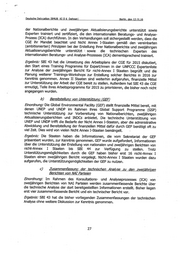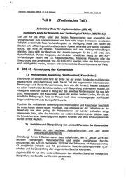 he ion U n erli 12.0 b) Ergebnis der ersten Runde des JAR Prozesses Einordnung: COP17 führte für die Berichterstattung der Annex I Staaten (sechster Nationalbericht und erster zweijähriger Bericht) einen internationalen Bewertungs- und Überprüfungsprozess ein. Die technische Überprüfung erfolgt durch internationale Experten/innen gefolgt durch ein Bewertungsverfahren der Vertragsstaaten. Der Prozess wird mit Schlussfolgerungen der Vertragsstaaten beschlossen. Bei SBI 42 konnte keine Einigung zu diesem Punkt erzielt werden. Ergebnis: Die Vertragsstaaten haben beschlossen, die Verhandlungen zum Ergebnis des ersten internationalen Bewertungs- und Überprüfungsprozesses während SBI 44 fortzuführen. Es fanden keine substantiellen Diskussionen zu diesem Agendapunkt statt. Ohne Mandat von SBI 43 wird in 2016 auch keine Revision des Bewertungs- und Überprüfungsprozesses stattfinden (wie in Entscheidung 2/CP.17 vorgesehen). Eine solche Revision kann somit erst in 2017 stattfinden, wenn auch der parallele Prozess für nicht-Annex I Länder überarbeitet werden soll. c) Überarbeitung der Richtlinien für AI Nationalberichte Einordnung: SBI 40 wurde von COP17 beauftragt, mit der Überarbeitung der Berichterstattungsrichtlinien für Nationalberichte von Annex. I-Staaten zu 'beginnen. Diese wurden im Jahr 1999 verabschiedet, und sind seither nicht überarbeitet worden. Bei SBI 42 wurden die Harmonisierung einiger Tabellen des gemeinsamen Berichterstattungsformats (CTF) und die Aktualisierung von veralteten Jahresangaben für Projektionen der Länder konstruktiv diskutiert. Ergebnis: Bei SBI 43 fanden keine Verhandlungen zu diesem Agendapunkt statt. ES wurde beschlossen, die Überarbeitung der Richtlinien in einem Workshop vor SBI 44 und während SBI 44 weiter zu verhandeln. Somit können die Ergebnisse von Paris für die weiteren Verhandlungen über die Berichterstattung berücksichtigt werden, was von der EU angestrebt worden war. d) Bericht zu den Al Inventar Daten Einordnung: Das UNFCCC-Sekretariat hat den Vertragsstaaten den Bericht zu nationalen Treibhausgasinventardaten für den Zeitraum 1990-2013 vorgelegt. Ergebnis: SBI 43 hat den Bericht ohne weitere Diskussion zur Kenntnis genommen e) Anrechnungsbericht für Annex B Parteien KP Einordnung: Das UNFCCC-Sekretariat hat den Vertragsstaaten den jährlichen Auswertungs- und Bilanzierungsbericht für 2015 zu Annex B Parteien unter dem Kyoto Protokoll vorgelegt. Ergebnis: SBI 43 hat den Bericht ohne weitere Diskussion zur Kenntnis genommen 3) Berichte von Nicht-Annex I Parteien unter der Konvention a) Arbeit der Consultative Group of Experts .(CGE) Einordnung: Die Consultative Group of Experts (CGE) ist eine 24-köpfige Expertengruppe, die Entwicklungsländer durch Kapazitätsaufbau bei der Erarbeitung 26