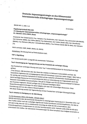 BMUB WR | 1, UBA 11.6 23.10.2014 Ergebnisprotoko]] IMA-XIX 19, Sitzung der Interministeriellen Arbeitsgruppe „Anpassungsstrategie“ 01. Oktober 2014; BMVI, Bonn Anwesend: Herr Stratenwerth, Frau Hempen, Frau Neukirchen, Herr Hanusch, Frau Litvinovitch (alle BMUB), Herr Schreiner (BMG), Herr Köthe (BMVI), Frau Mahrenhoiz, Herr Vetter (beide UBA), Herr Mundhenke (BMWi), Frau Niemann (RKI),Herr Schmallenbach (BMEL), Frau Fichtner (beide BBK für BMI), Herr Gömann (nn) Nicht vertreten: BMF, BMBF, BMAS, AA, BMvG Anmerkung: Die Sitzung fand auf Referatsebene statt. TOP 1: Begrüßung gefasst: „Frau Schauer, UBA berichtet über den Stand der Arbeiten im Netzwerk Vulnerabilität und fasst die wesentliche Ergebnisse des Vorangegangenen IMA-AFK Workshops Zusammen (siehe Anlage). BMVI hält es für wichtig, den erreichten Sachstand im Hinblick auf den weiterhin erforderlichen Handlungsbedarf und 3.1 EU-Anpassung [WG 6, EEA Studie ‚ Climate Adapt) BMUB informierte über die kommende Sitzung der EU Arbeitsgruppe Anpassung am 3, November 2014. Auf dem Treffen stehen nach der vorläufigen Agenda die Punkte Scoreboard und Berichtspflichten. Die IMA ist sich- darin einig, dass der viel zu ambitionierte Vorschlag der KOM die MS zu kontrollieren, dem Entwicklungsprozess unangemessen ist und eher kontraproduktiv wirkt. Vielmehr sollte KOM die MS darin de