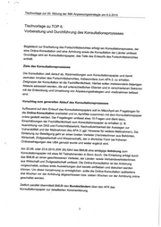 Tischvorlage zur 20. Sitzung der IMA Anpassungsstrategie am 9.3.2015 Tischvorlage zu TOP 6: Vorbereitung und Durchführung des Konsultationsprözesses Begleitend zur Erarbeitung des Fortschrittsberichtes erfolgt ein Konsultationsprozess, der eine Online-Konsultation und eine Anhörung sowie die Konsultation der Länder umfasst. Grundlage wird ein Konsultationspapier, das Teile des Entwurfs des Fortschrittsberichtes enthält. . Ziele des Konsultationsprozesses Die Konsultation zielt darauf ab, Rückmeldungen zum Konsultationspapier und damit zentralen Inhalten des Fortschrittsberichtes, insbesondere zum APA 2, zu erhalten. Zielgruppe der Konsultation ist die Fachöffentlichkeit. Hierbei sollen insbesondere diejenigen Akteure adressiert werden, die auf unterschiedlichen Ebenen und in verschiedenen Sektoren mit der Entwicklung und Umsetzung von Anpassungsstrategien und -maßnahmen befasst sind. Vorschlag zum generellen Ablauf des Konsultationsprozesses Aufbauend auf dem Entwurf des Konsultationspapiers soll im März/April ein Fragebogen für die Online-Konsultation erarbeitet und im April/Mai zusammen mit dem Konsultationspapier online gestellt werden. Der Fragebogen umfasst etwa 15 Fragen und dient dazu, Einschätzungen der Fachöffentlichkeit zum Konsultationspapier zu erhalten (z. B. Ausrichtung von DAS und Fortschrittsbericht, Nachvoliziehbarkeit der Aussagen zur Vulnerabilität und der Maßnahmen des APA 2; ggf. Hinweise für weitere Maßnahmen). Die Einladung zur Beteiligung geht an einen breiten Verteiler (Vertreter/innen aus Behörden, Wirtschaft, Zivilgesellschaft und Wissenschaft), der in ähnlicher Form bei früheren Onlinebefragungen des UBA genutzt wurde und weiter ergänzt wird. Am 22.06. oder 23.6.2015 (KW 26) führt das BMUB eine eintägige Anhörung zum Konsultationspapier mit etwa 50 Teilnehmenden in Bonn durch. Die Einladung erfolgt durch das BMUB an einen geschlossenen Verteiler, der Länder- sowie Verbandsvertreter/innen aus Wirtschaft und Zivilgesellschaft umfasst. Die Online-Konsultation ist der Anhörung vorgeschaltet, sodass erste Auswertungen dort bereits einfließen und diskutiert werden können. Um diese Verzahnung zu ermöglichen, sollte die Online-Konsultation spätestens drei Wochen vor der Anhörung abgeschlossen bzw. sieben Wochen vor der Anhörung online geschaltet werden. Zeitlich parallel! übermittelt BMUB den Bundesländern über den AFK das Konsultationspapier zur detaillierten Kommentierung.