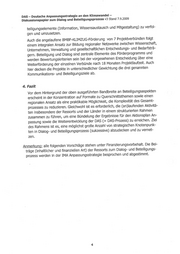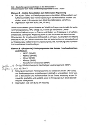 DAS — Deutsche Anpassungsstrategie an den Klimawandel — Diskussionspapier zum Dialog und Beteiligungsprozess v3 Stand 7.9.2009 teiligungselemente (Information, Wissensaustausch und Mitgestaltung) zu verfol- gen und umzusetzen. Auch die angelaufene BMBF-KLIMZUG-Förderung von 7 Projektverbünden folgt einem integralen Ansatz zur Bildung regionaler Netzwerke zwischen Wissenschaft, Unternehmen, Verwaltung und gesellschaftlichen Entscheidungs- und Bedarfsträ- gern. Beteiligung und Dialog sind zentrale Elemente des Förderprogramms und werden Bewertungskriterien sein bei der vorgesehenen Entscheidung über eine Weiterförderung der einzelnen Verbünde nach 18 Monaten Projektlaufzeit. Auch hier decken die Projekte in unterschiedlicher Gewichtung die drei genannten Kommunikations- und Beteiligungsziele ab. 4. Fazit Vor dem Hintergrund der oben ausgeführten Bandbreite an Beteiligungsaspekten erscheint in der Konzentration auf Formate zu Querschnittsthemen sowie einen regionalen Ansatz als eine praktikable Möglichkeit, die Komplexität des Gesamt- prozesses zu reduzieren. Gleichwohl ist es erforderlich, die (an)laufenden Aktivitä- ten insbesondere der Ressorts und der Länder in einem strukturierten Rahmen zusammen zu führen, um eine Bündelung der Ergebnisse für den Aktionsplan An- passung sowie die Weiterentwicklung der DAS (= DAS-Prozess) zu erreichen. Ziel des Rahmens ist es, eine möglichst große Anzahl von strategischen Knotenpunk- ten in Dialog- und Beteiligungsprozess (sukzessive) abzudecken und zu vernet- zen. Anmerkung: alle folgenden Vorschläge stehen unter Finanzierungsvorbehalt. Die Bei- träge (inhaltlicher und finanziellen Art) der Ressorts zum Dialog- und Beteiligungs- prozess werden in der IMA Anpassungsstrategie besprochen und abgestimmt.