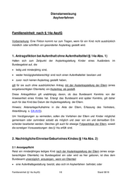 Dienstanweisung Asylverfahren Familieneinheit nach § 14a AsylG Vorbemerkung: Eine Fiktion kommt nur zum Tragen, wenn für ein Kind nicht ausdrücklich mündlich oder schriftlich ein gesonderter Asylantrag gestellt wird. 1. Antragsfiktion bei Aufenthalt ohne Aufenthaltstitel (§ 14a Abs. 1) Halten sich zum Zeitpunkt der Asylantragstellung Kinder eines Ausländers im Bundesgebiet auf, die ledig und minderjährig sind, weder freizügigkeitsberechtigt sind noch einen Aufenthaltstitel besitzen und zuvor noch keinen Asylantrag gestellt haben, gilt für sie auch ohne ausdrücklichen Antrag mit der Asylantragstellung der Eltern (eines sorgeberechtigten Elternteils) ein Asylantrag als gestellt. Diese Antragsfiktion gilt unabhängig davon, ob das Bundesamt Kenntnis von der Anwesenheit eines Kindes hat. Erlangt das Bundesamt erst später Kenntnis, gilt daher auch für das Kind das Datum der Asylantragstellung der Eltern. Hinweis: Aktenanlage/Aufnahme in die Akte der Eltern, Erfassung des Vertreters, Aktenführung s. DA-AVS). Um Verzögerungen zu vermeiden, sollen die Verfahren der Eltern und Kinder möglichst gemeinsam oder zumindest sobald als möglich und zwar von ein und demselben Ent- scheider bearbeitet werden. Gleiches gilt auch für etwaige Folgeanträge der Eltern, soweit die sonstigen Voraussetzungen des § 14a erfüllt sind. 2. Nachträgliche Einreise/Geburt eines Kindes (§ 14a Abs. 2) 2.1 Anzeigepflicht Reist ein minderjähriges lediges Kind nach der Asylantragstellung der Eltern (eines sorge- berechtigten Elternteils) ins Bundesgebiet ein oder wird es hier geboren, ist dies dem Bundesamt unverzüglich anzuzeigen, wenn ein Elternteil eine Aufenthaltsgestattung besitzt, also sich im Asylverfahren befindet, oder Familieneinheit (§ 14a AsylG) 1/6 Stand 08/18