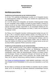 Dienstanweisung Asylverfahren Identifizierungsverfahren Verpflichtung des Bundesamtes aus der Verfahrensrichtlinie Art. 24 Abs.1 VRL verpflichtet die Mitgliedstaaten zu prüfen, ob ein Antragsteller besonde- re Verfahrensgarantien benötigt. Die Prüfung muss innerhalb einer angemessenen Frist nach Antragstellung erfolgen. Art. 2 lit.d VRL definiert einen Antragsteller, der besondere Verfahrensgarantien benötigt, als einen Antragsteller, dessen Fähigkeit, die Rechte aus dieser Richtlinie in Anspruch zu nehmen und den sich aus dieser Richtlinie ergebenden Pflichten nachkommen zu können, aufgrund individueller Umstände eingeschränkt ist. Die beispielhafte Aufzählung der hier- für in Betracht kommenden Personengruppen aus Artikel 21 AufnRL kann hier ergänzend herangezogen werden. Die Prüfung, ob ein Antragsteller besondere Verfahrensgarantien benötigt, kann gem. Art. 24 Abs. 2 VRL in vorhandene nationale Verfahren und/oder in die Prüfung nach Art. 22 AufnRL einbezogen werden und muss nicht in Form eines Verwaltungsverfahrens vorge- nommen werden. Antragsteller, die besondere Verfahrensgarantien benötigen, sollen von den Mitgliedstaaten eine angemessene Unterstützung erhalten, damit sie während der Dauer des Verfahrens die Rechte aus dieser Richtlinie in Anspruch nehmen und den sich aus dieser Richtlinie ergebenden Pflichten nachkommen können. Verpflichtung der Bundesländer aus der Aufnahmerichtlinie Art. 21 AufnRL verpflichtet die MS in einem allgemein festgelegten Grundsatz dazu, die spezielle Situation von schutzbedürftigen Personen wie Minderjährigen, unbegleiteten Minderjährigen, Behinderten, älteren Menschen, Schwangeren, Alleinerziehenden mit minderjährigen Kindern, Opfern des Menschenhandels, Personen mit schweren körperli- chen Erkrankungen, Personen mit psychischen Störungen und Personen die Folter, Ver- gewaltigung oder sonstige schwere Formen psychischer oder sexueller Gewalt erli tten haben, wie z.B. Opfer der Verstümmelung weiblicher Genitalien zu berücksichtigen. Das Konzept zum Identifizierungsverfahren enthält detaillierte Ausführungen zu den recht- lichen Vorgaben und den Arbeitsabläufen im AVS und bei den Entscheidern (s. dort Punkt 6.3). Mit dem Gesetz zur Umsetzung der beiden Richtlinie ist vorgesehen, dass die Landesbe- hörden, die für die Beurteilung der besonderen Bedürfnisse schutzbedürftiger Personen Identifizierungs verfahren 1/2 Stand 07/15