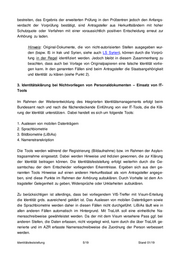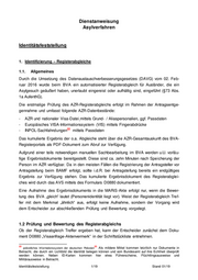 Dienstanweisung Asylverfahren Identitätsfeststellung 1. Identifizierung – Registerabgleiche 1.1. Allgemeines Durch die Umsetzung des Datenaustauschverbesserungsgesetzes (DAVG) vom 02. Feb- ruar 2016 wurde beim BVA ein automatisierter Registerabgleich für Ausländer, die ein Asylgesuch geäußert haben, unerlaubt eingereist oder aufhältig sind, eingeführt (§73 Abs. 1a AufenthG). Die erstmalige Prüfung des AZR-Registerabgleichs erfolgt im Rahmen der Antragsentge- gennahme und umfasst folgende AZR-Datenbestände: - AZR und nationaler Visa-Datei mittels Grund- / Aliaspersonalien, ggf. Passdaten - Europäisches VISA-Informationssystem (VIS) mittels Fingerabdrücke 22 - INPOL-Sachfahndungen mittels Passdaten Das kumulierte Ergebnis der o.a. Abgleiche steht über die AZR-Gesamtauskunft des BVA- Registerportals als PDF-Dokument zum Abruf zur Verfügung. Aufgrund einer teils notwendigen manuellen Sachbearbeitung im BVA werden u.U. vorläu- fige Ergebnisdokumente bereitgestellt. Diese sind ca. zehn Minuten nach Speicherung der Person im AZR verfügbar. Da in den meisten Fällen die Registrierung der Antragsteller vor Antragstellung beim BAMF erfolgt, sollte i.d.R. bei Antragstellung bereits ein endgültiges Ergebnis zur Verfügung stehen. Das kumulierte Ergebnisdokument des Registerabglei- ches wird durch das AVS mittels des Formulars D0880 dokumentiert. Eine Aufnahme des Ergebnisdokuments in die MARiS-Akte erfolgt nur, wenn die Bewer- tung des BVA „gleich“ lautet (Personenidentität liegt vor). Weist der Registerabgleich Tref- fer mit dem Merkmal „ähnlich“ aus, erfolgt keine Aufnahme, sondern der Vorgang wird dem Entscheider zur abschließenden Prüfung und Bewertung vorgelegt. 1.2 Prüfung und Bewertung des Registerabgleichs Ob der Registerabgleich Treffer ergeben hat, kann der Entscheider zunächst dem Doku- ment D0880 „Visaanfrage-Aktenvermerk“ in der Schriftstückliste entnehmen. 22 23 polizeiliches Informationssystem der deutschen Polizeien Als mildere Mittel kommen letztlich nur Dokumente in Betracht, die durch ein Lichtbild die Identität belegen können und vom Bundesamt auf ihre Echtheit überprüft werden können. Neben ID-Karten kommen hier etwa Führerscheine, Flüchtlingsausweise und Militärausweise in Betracht. Identitätsfeststellung 1/19 Stand 01/19