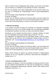 Sollte ein Treffer für einen EU-Mitgliedsstaat (MS) vorliegen, wird die Akte nach Erstbefra- gung und Anhörung zur Zulässigkeit an das zuständige DU-Zentrum weitergeleitet. Sind die Visa-Unterlagen eines anderen Mitgliedstaates für das nationale Verfahren rele- vant siehe zur Anforderung der Antragsunterlagen DA-AVS Kapitel Registerabgleiche Punkt 2.3. Die Visa-Unterlagen werden Bestandteil der Verfahrensakte. Erinnerung an Anfragen: Es kann nach drei Monaten einmalig eine Erinnerung erfolgen. Liegt nach weiteren drei Monaten (insgesamt sechs Monate nach der ersten Anfrage) wiederum keine Antwort vor, ist nicht mehr mit einer Beantwortung zu rechnen und das Verfahren fortzuführen. 1.4 Nationale Visa-Abfrage In der nationalen Visa-Datei sind neben den kurzfristigen von Deutschland ausgestellten Schengen-Visa, die auch in der VIS-Datei enthalten sind, auch langfristige ausschließlich auf Deutschland beschränkte Visa (z.Bsp. zum Zweck eines Studiums) enthalten. Erkenntnisse aus der nationalen Visa-Datei können im nationalen Verfahren von Nutzen sein. Eine Zuständigkeit eines anderen Staates ergibt sich dadurch i.d.R. nicht. Bei Asylbewerbern, die Reisedokumente mit Visaeinträgen vorlegen, ohne dass entspre- chende Treffer aus den AZR Visa- oder VIS-Datenbank- Abfragen vorliegen, sind die Vi- saunterlagen gem. DA-AVS/Registerabgleich/Anforderung von Visa-Unterlagen anzufor- dern Die Visa-Unterlagen werden Bestandteil der Verfahrensakte. Erinnerung an Anfragen: Es kann nach drei Monaten einmalig eine Erinnerung erfolgen. Liegt nach weiteren drei Monaten (insgesamt sechs Monate nach der ersten Anfrage) wiederum keine Antwort vor, ist nicht mehr mit einer Beantwortung zu rechnen und das Verfahren fortzuführen. Werden mehrere Personen mit gleichen oder ähnlichen Personalien im Registerabgleich angeboten, ist vom zust. Entscheider zu bestimmen, welche Daten dem Antragsteller zu- zuordnen sind (s. 1.1). 1.5 Grund- und Aliaspersonalien im AZR Das Ergebnis des Abgleichs im AZR wird einschließlich der Bewertung des BVA hinsicht- lich einer möglichen Personengleichheit zum Abruf über das Registerportal zur Verfügung gestellt. Die abschließende Bewertung ggf. vorhandener „ähnlich“-Treffer erfolgt durch den zuständigen Entscheider (s. 1.1). Identitätsfeststellung 3/19 Stand 01/19