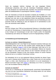 Sofern die vorgelegten ärztlichen Unterlagen den oben dargelegten Mindest- anforderungen entsprechen, aber nicht alle notwendigen Feststellungen enthalten, ist durch das Bundesamt der Sachverhalt weiter aufzuklären. Bei psychischen Erkrankungen gelten die Qualitätsstandards für psychologische Gutachten (Anlage 2). Wenn der Entscheider auf Grund der besonderen Umstände des Einzelfalles (z. B. wenn der Antragsteller die Kosten für eine hinreichende ärztliche Äußerung offensichtlich nicht aufbringen kann oder wenn an dem tatsächlichen Erleben des geschilderten traumatisie- renden Ereignisses keine begründeten Zweifel bestehen) trotz der Nichterfüllung der eben genannten Punkte der Auffassung ist, dass die Diagnose für ihn nachvollziehbar ist, dann soll er den Sachverhalt weiter aufklären. Hinweis: Wird das Vorliegen einer PTBS auf traumatisierende Erlebnisse im Herkunftsland gestützt und steht die Traumatisierung im Zusammenhang mit der vorgetragenen Verfolgung, dann ist das Vorliegen der Voraussetzungen von §§ 3 oder 4 AsylG zu prüfen. Die festgestellte Traumatisierung kann ebenso wie Folterspuren auf die Ver-folgungshandlung hindeuten. 4.2 Herbeiführung der Entscheidungsreife Auf Grund von ärztlichen "Attesten/Stellungnahmen" Atteste/Stellungnahmen sind in der Regel für das Bundesamt kostenlose Äußerungen des behandelnden Arztes und nicht die eines neutralen Dritten. Deshalb gelten die Qualitäts- standards für Gutachten (Anlage 2) nicht für diese Äußerungen. Deren Wert ist im Ver- gleich zu einem Gutachten aber trotzdem nicht zu unterschätzen. Während der Gutachter in der Regel nur einen relativ kurzen Zeitraum mit dem Probanden verbringen kann, hat sich der behandelnde Therapeut oft über einen längeren Zeitraum mit seinem Patienten befasst und kann so zu fundierten Erkenntnissen kommen. Der behandelnde Arzt ist um eine ergänzende Äußerung hinsichtlich der offenen Fragen, die ja auch im Interesse seines Patienten liegt, zu bitten. Hierbei sind an ihn die konkreten Fragen zu richten, deren Beantwortung noch erforderlich ist (zu den beispielsweise in Betracht kommenden Fragen siehe Anlage 3). Gleichzeitig ist ein Termin zu vereinbaren, bis zu dem die erbetene Äußerung erfolgen soll. 35 Auf Grund von Gutachten Konnte eine zur Herbeiführung der Entscheidungsreife ausreichende Sachverhaltsaufklä- rung durch die eben beschriebenen Maßnahmen nicht erlangt werden (z.B. weil mehrere 35 Zur Klärung der Begrifflichkeiten siehe Anlage 4 Krankheitsbedingte Abschiebungs verbote 13/16 Stand 02/19