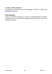 4.3.3 Opfer von Menschenhandel Die Bearbeitung der Asylanträge dieser Personengruppe ist ausführlich in Kapitel „Men- schenhandel“ beschrieben. 5. Berichtspflicht In Fällen von besonderer Bedeutung (z.B. Hinweis auf öffentlichkeitswirksame Verfahren) ist unabhängig von der ggf. erforderlichen Beteiligung anderer Stellen grds. auch dem Re- feratsleiter zu berichten. Sonderbeauft ragt e 8/8 Stand 12/18