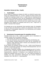 Dienstanweisung Asylverfahren Subsidiärer Schutz (§ 4 Abs. 1 AsylG) 1. Zuständigkeit Mit dem Gesetz zur Umsetzung der Richtlinie 2011/95/EU vom 28.08.2013 wurde die Neu- fassung der Qualifikationsrichtlinie vom 13.12.2011 umgesetzt. Mit diesem Gesetz wurde der Begriff des Asylantrags erweitert. Nach § 13 AsylG umfasst der Asylantrag jetzt das Asylrecht und den internationalen Schutz, also den Flüchtlingsschutz und den subsidiären Schutz. Die Beantragung des internationalen subsidiären Schutzes ist nur noch im Rah- men eines Asylantrags möglich, nicht mehr durch einen isolierten Antrag bei der Auslän- derbehörde. Mit der Regelung zum subsidiären Schutz nach § 4 Abs. 1 AsylG ist Art. 15 QualfRL in nationales Recht umgesetzt. Der Asylantrag kann auf den internationalen Schutz beschränkt werden. Der Antragsteller ist über die Folgen einer Beschränkung zu belehren (ein entsprechender Hinweis wurde in die Belehrung für Erstantragsteller aufgenommen). Eine Beschränkung auf den subsidiä- ren Schutz ist nicht möglich. 2. Gemeinsame Voraussetzungen für subsidiären Schutz Subsidiärer Schutz nach § 4 Abs. 1 AsylG ist zu gewähren, wenn im Herkunftsland ein ernsthafter Schaden droht. Als ernsthafter Schaden gilt: 1. die Verhängung oder Vollstreckung der Todesstrafe, 2. Folter oder unmenschliche oder erniedrigende Behandlung oder Bestrafung oder 3. eine ernsthafte individuelle Bedrohung des Lebens oder der Unversehrtheit einer Zivilperson infolge willkürlicher Gewalt im Rahmen eines internationalen oder inner- staatlichen bewaffneten Konflikts. Mit der Aufnahme des subsidiären Schutzes in § 4 Abs. 1 AsylG ist keine Änderung der materiellen Voraussetzungen gegenüber den bisherigen Abschiebungsverboten nach § 60 Abs. 2, 3 und 7 Satz 2 AufenthG erfolgt. Im Gegensatz zur (politischen) Verfolgung, die zur Schutzgewährung nach Art. 16a Abs. 1 GG bzw. § 3 Abs. 1 AsylG führt, setzt der subsidiären Schutz nicht voraus, dass eine Ver- folgungsmaßnahme zielgerichtet in Anknüpfung an sog. asylrelevante Merkmale droht. Insoweit kann subsidiärer Schutz nach § 4 Abs. 1 Nr. 1 und 2 AsylG auch zugunsten von Straftätern etwa wegen unmenschlicher Haftbedingungen oder drohender Todesstrafe festzustellen sein (s. aber Ziffer 3.4 – Ausschlussgründe). Subsidiärer Schutz (§ 4 Abs. 1 AsylG) 1/15 Stand 04/18