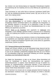 3.1.2 Nachträgliche Feststellung einer Volljährigkeit zum Zeitpunkt der Antragstellung Wurde in der Annahme einer bestehenden Minderjährigkeit ein Asylverfahren für einen unbegleiteten Minderjährigen formgerecht eröffnet, mangelt es in diesen Fällen zur Wirk- samkeit der Antragstellung bei nachträglicher Feststellung der Volljährigkeit zum Zeitpunkt der Antragstellung i.d.R. an der Unterschrift des Antragstellers. Aus Gründen der Rechts- sicherheit ist die Nachholung der Unterschrift geboten. Es ist daher darauf zu achten, dass unmittelbar nach Bekanntwerden des neuen Sachverhaltes der Antragsteller selbst die Antragstellung bestätigt (z.B. Unterschrift Niederschrift Teil 1). Im umgekehrten Fall s. 0. 3.1.3 Ausländisches Recht und Fortbestehen der Minderjährigkeit Tritt nach dem Heimatrecht des Antragstellers die Volljährigkeit erst nach Vollendung des 18. Lebensjahres ein, endet die Vormundschaft auch erst zu diesem späteren Zeitpunkt (Art. 7 und Art. 24 EGBGB; Verweisung auf die Anwendung des Heimatrechts). Unter folgendem Link www.vfst.de/apps/elbib/STAUA ist der Zugangscode zu einer Sammlung systematischer Übersichten über die wesentlichen Rechtsnormen ausländi- scher Staaten vermerkt, die u.a. auch das Personenstandsrecht beinhaltet. Das Fortbestehen einer Minderjährigkeit im Heimatland hat auf das Asylverfahren keine Auswirkung; ausschlagegebend ist für die Bewertung der Verfahrensfähigkeit allein deut- sches Recht (§12 Abs. 2 AsylG). 3.2 Alterseinschätzung - Altersfeststellung 3.2.1 Zuständigkeit der Landesbehörden – Übernahme durch Bundesamt Die Zuständigkeit für die Alterseinschätzung liegt bei den Jugendämtern. Diese müssen im Rahmen der Inobhutnahme gemäß § 42f SGB VIII eine Altersfeststellung durchführen, wenn Zweifel am Alter eines Antragstellers bestehen. Die Entscheidung des Jugendamts ist in jedem Fall vom Bundesamt zu akzeptieren, solange keine anderslautende Entschei- dung eines Gerichtes vorliegt. Im Rahmen der Vormundbestellung besteht für die Gerichte nämlich ein Amtsermittlungsgrundsatz, im Rahmen dessen die Feststellung des Jugend- amtes mit einbezogen und ggf. das fiktive Geburtsdatum neu angegeben wird. In eher seltenen Ausnahmefällen ist nach Ziffer 0 und 0 zu verfahren. 3.2.2 Vermutete Volljährigkeit trotz anderslautender Feststellung Wirkt der Antragsteller entgegen einer erfolgten Feststellung der Minderjährigkeit auf den Anhörer/Entscheider offensichtlich wie ein Volljähriger, ist das zuständige Jugendamt hier- über zu informieren und eine Überprüfung anzuregen. Unbegleitete Minderjährige 4/14 Stand 01/18