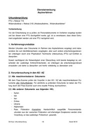 Dienstanweisung Asylverfahren Urkundenprüfung PTU = Referat 71E Widerrufsreferat = Referat 31B „Wiederaufnahme-, Widerrufsverfahren“ Vorbemerkung Vor der Entscheidung ist zu prüfen, ob Personaldokumente im Verfahren vorgelegt wurden und bei diesen eine PTU durchgeführt wurde; ggf. ist zu veranlassen, dass diese Doku- ment angefordert werden und eine PTU nachgeholt wird. 1. Verfahrensgrundsätze Werden Urkunden oder Dokumente im Rahmen des Asylverfahrens vorgelegt, sind insbe- sondere die zum Identitätsnachweis vorgelegten, aber auch andere entscheidungsrelevan- ten Unterlagen durch eine Physikalisch Technische Untersuchung (PTU) auf Echtheit zu überprüfen. Soweit nachfolgend die Notwendigkeit einer Überprüfung nicht bereits festgelegt ist, ent- scheidet der zuständige Anhörer/Entscheider, ob Unterlagen als entscheidungsrelevant einzustufen und daher zu überprüfen und hierfür vollständig zu übersetzen sind. 2. Voruntersuchung in den AS / AZ 2.1 Alle maschinenlesbaren Dokumente Mit dem Pass-Scanner prüfen die Vorprüfer in den AS / AZ alle maschinenlesbaren Do- kumente aller Herkunftsländer. Für sämtliche zu prüfenden Dokumente ist neben der Prü- fung durch den Pass-Scanner auch eine visuelle Prüfung durchzuführen. 2.2. Alle anderen Dokumente aus folgenden HKL - Syrien - Irak - Iran - Eritrea - Ukraine - Afghanistan - Russ. Föderation (Ausnahme: Handschriftlich ausgefüllte Personenstands- urkunden aus der russischen Föderation und ehemaligen Sowjetunion werden ohne Vorprüfung an das zuständige Prüfzentrum gesandt). DA-Asyl: Urkundenprüfung 1/6 Stand 06/18