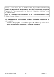 Hinweis: Auf Grund dessen, dass das Häkchen im Feld „Papiere einbehalten“ automatisch gelöscht wird, wenn das Feld „versendet an/am“ befüllt wird, ist in den Fällen, in denen die Papiere an die PTU versendet werden, das Häkchen im Feld „Papiere einbehalten“ manu- ell wieder zu setzen. Sofern die Papiere auf Grund einer Fälschung von der PTU einbehalten werden, ist das Häkchen wieder zu löschen. Eine Dokumentation des Antragsversandes an die PTU in der Maske „Postausgänge“ ist nicht erforderlich. Das Untersuchungsergebnis bzw. die Mitteilung über die Einbehaltung der Dokumente ist nach Rücklauf mit dem Indizierbegriff „PTU_Bericht“ einzuscannen. DA-Asyl: Urkundenprüfung 6/6 Stand 06/18