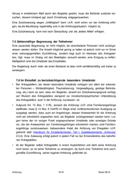 hörung in erheblichem Maß durch den Begleiter gestört, muss die Behörde zunächst ver- suchen, diesem Umstand ggf. durch Ermahnung entgegenzuwirken. Eine Zurückweisung wegen „Unfähigkeit“ kann i.d.R. nicht schon vor der Anhörung erfol- gen, da die Beurteilung regelmäßig erst in der Anhörungssituation möglich ist. Eine Zurückweisung kann erst nach Überprüfung und als „letztes Mittel“ erfolgen. 7.5 Zahlenmäßige Begrenzung der Teilnehmer Eine pauschale Begrenzung ist nicht möglich, da verschiedene Personen nicht zurückge- wiesen werden dürfen. Die Anzahl möglichst gering zu halten ist jedoch nicht nur im Sinne einer ordnungsgemäßen Durchführung, sondern liegt auch im Interesse des Antragstel- lers. Ggf. muss im Dialog mit den Beteiligten versucht werden, eine Einigung zu treffen. Maßgeblich sind die Umstände des Einzelfalles. Die Begleitung durch mehr als einen Beistand ist aber nicht verhältnismäßig und daher zu verweigern. 7.6 Im Einzelfall zu berücksichtigende besondere Umstände: • Bei Antragstellern, bei denen besondere Umstände vorliegen (vor allem bei vulnerab- len Personen – Minderjährigkeit, Traumatisierung, Vergewaltigung, geistige Behinde- rung, etc.) kann es sein, dass ein Begleiter, obwohl ein Zurückweisungsgrund vorliegt, auf Wunsch des Antragstellers zwingend zur moralischen/psychischen Unterstützung des Antragstellers auch in der Anhörung zuzulassen ist. • Aufgrund Art. 15 Abs. 1 V-RL, wonach die Anhörung i.d.R. ohne Familienangehörige stattfindet, muss § 14 Abs. 6 VwVfG im Wege einer richtlinienkonformen Auslegung so ausgelegt werden, dass auch ein Angehöriger, dessen Anwesenheit für die Anhörung nicht als erforderlich angesehen wird, als Begleiter zurückgewiesen werden kann. Li e- gen keine der im vorigen Punkt angesprochenen Umstände oder sonstigen Gründe vor, die die Anwesenheit von Familienangehörigen erforderlich machen, sind Familien- angehörige zurückzuweisen. Insbesondere findet die Anhörung von Ehegatten i.d.R. getrennt statt (Handbuch für Einzelentscheider, Teil I, Qualitätsstandards „Anhörung“ 2.5.4). Eine Zulassung erfolgt jedoch in jedem Fall nur bei Einverständnis des betroffe- nen Antragstellers. • Ist der Begleiter selbst Antragsteller in einem Asylverfahren und steht seine Anhörung noch bevor, so ist seine Teilnahme zu verweigern, da durch eine Teilnahme eine sach- gemäße Durchführung seiner eigenen Anhörung gefährdet ist. Anhörung 16/19 Stand 08/18