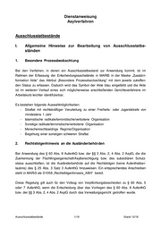 Dienstanweisung Asylverfahren Ausschlusstatbestände I. Allgemeine Hinweise zur Bearbeitung von Ausschlusstatbe- ständen 1. Besondere Prozessbeobachtung Bei den Verfahren, in denen ein Ausschlusstatbestand zur Anwendung kommt, ist im Rahmen der Erfassung der Entscheidungssachstände in MARIS in der Maske „Zusatzi n- formation Akte“ das Attribut „Besondere Prozessbeobachtung“ mit dem jeweils zutreffen- den Status zu erfassen. Dadurch wird das Symbol der Akte blau eingefärbt und die Akte ist im weiteren Verlauf eines sich möglicherweise anschließenden Gerichtsverfahrens im Arbeitskorb leichter identifizierbar. Es bestehen folgende Auswahlmöglichkeiten: - Straftat mit rechtskräftiger Verurteilung zu einer Freiheits- oder Jugendstrafe von mindestens 1 Jahr - Islamistische radikale/terroristische/verbotene Organisation - Sonstige radikale/terroristische/verbotene Organisation - Menschenrechtswidrige Regime/Organisation - Begehung einer sonstigen schweren Straftat 2. Rechtsfolgenhinweis an die Ausländerbehörden Bei Anwendung des § 60 Abs. 8 AufenthG bzw. der §§ 3 Abs. 2, 4 Abs. 2 AsylG, die die Zuerkennung der Flüchtlingseigenschaft/Asylberechtigung bzw. des subsidiären Schutz- status ausschließen, ist die Ausländerbehörde auf die Rechtsfolgen (keine Aufenthaltser- laubnis) des § 25 Abs. 3 Satz 3 AufenthG hinzuweisen. Ein entsprechendes Anschreiben steht in MARiS als D1058 „Rechtsfolgenhinweis_ABH“ bereit. Diese Regelung gilt auch für den Vollzug von Verpflichtungsbescheiden zu § 60 Abs. 5 oder 7 AufenthG, wenn die Entscheidung über das Vorliegen des § 60 Abs. 8 AufenthG bzw. der §§ 3 Abs. 2, 4 Abs. 2 AsylG durch das Verwaltungsgericht getroffen wurde. Ausschlusstatbestände 1/19 Stand 12/18