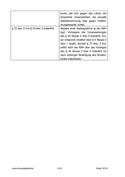 wurde und sich gegen das Leben, die körperliche Unversehrtheit, die sexuelle Selbstbestimmung oder gegen Vollstre- ckungsbeamte richtet. § 72 Abs. 2 iVm § 25 Abs. 3 AufenthG Abgabe einer Stellungnahme an die ABH bzgl. Vorliegens der Voraussetzungen des § 25 Absatz 3 Satz 3 AufenthG. Die- ser entspricht inhaltlich dem § 4 Absatz 2 Satz 1 AsylG. Gemäß § 72 Abs. 2 Auf- enthG kann die ABH über das Vorliegen des § 25 Absatz 3 Satz 3 AufenthG nur nach vorheriger Beteiligung des Bundes- amtes entscheiden. Ausschlusstatbestände 3/19 Stand 12/18