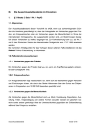 III. Die Ausschlusstatbestände im Einzelnen 1. § 3 Absatz 2 Satz 1 Nr. 1 AsylG 1.1 Allgemeines Der Ausschlusstatbestand dieser Vorschrift ist erfüllt, wenn aus schwerwiegenden Grün- den die Annahme gerechtfertigt ist, dass der Antragsteller ein Verbrechen gegen den Fri e- den, ein Kriegsverbrechen oder ein Verbrechen gegen die Menschlichkeit im Sinne der internationalen Vertragswerke, die ausgearbeitet worden sind, um Bestimmungen bezüg- lich dieser Verbrechen zu treffen, begangen hat. Zur Konkretisierung kann u.a. auf Art. 7 und 8 des Römischen Statuts des Internationalen Strafgerichts vom 17.07.1998 verwiesen werden. Bei konkreten Anhaltspunkten für das Vorliegen dieser seltenen Fallkonstellationen ist das Referat 71A vor Entscheidung zu informieren. 1.2. Tatbestandsvoraussetzungen 1.2.1 Verbrechen gegen den Frieden Ein Verbrechen gegen den Frieden liegt u.a. vor, wenn ein Angriffskrieg geplant, vorberei- tet oder durchgeführt wird. 1.2.2 Kriegsverbrechen Ein Kriegsverbrechen liegt insbesondere vor, wenn sich die Maßnahmen gegen Personen und Einrichtungen richten, die durch das Genfer Abkommen über den Schutz von Zivilper- sonen in Kriegszeiten vom 12.08.1949 besonders geschützt sind. 1.2.3 Verbrechen gegen die Menschlichkeit Als Verbrechen gegen die Menschlichkeit sind u.a. Mord, Versklavung, Deportation, Aus- rottung, Folter, Vergewaltigung und andere Formen sexueller Gewalt von gleichem Ge- wicht sowie andere gewichtige Akte der Unmenschlichkeit gegenüber der Zivilbevölkerung während des Krieges zu verstehen. Ausschlusstatbestände 4/19 Stand 12/18