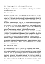 2.2.2 Tatbegehung außerhalb der Bundesrepublik Deutschland Die Begehung einer Straftat muss vor seiner Aufnahme als Flüchtling und außerhalb des Bundesgebietes erfolgt sein. 2.2.3 Schwere Straftat Die Schwere der Straftat gemäß § 3 Abs. 2 Satz 1 Nr. 2 AsylVfG bestimmt sich nach inter- nationalen Maßstäben. Es muss sich um ein Kapitalverbrechen oder eine sonstige Straftat handeln, die in den meisten Rechtsordnungen als besonders schwerwiegend qualifiziert ist und entsprechend strafrechtlich verfolgt wird (BVerwG, Urt. v. 16.02.2010 – 10 C 7.09, m.w.N.). Als schwere Straftaten in diesem Sinne sind u.a. terroristische Handlungen anzusehen, die durch ihre Gewalt gegenüber der Zivilbevölkerung gekennzeichnet sind (vgl. BVerwG, Urt. v. 07.07.2011 -10 C 26.10). Allein die Zugehörigkeit einer Person zu einer Organisati- on, die ihre Ziele (auch) mit terroristischen Mitteln zu erreichen sucht, rechtfertigt jedoch nicht zwingend die Annahme eines Ausschlussgrundes gemäß § 3 Abs. 2 Satz 1 Nr. 2 AsylG. Es bedarf vielmehr der Feststellung einer individuellen Verantwortung. Soweit eine Person eine hervorgehobene Position innerhalb einer solchen Organisation innehatte, besteht zwar eine Vermutung ihrer individuellen Verantwortung für das Tun der Organisation. Es bedarf jedoch auch hier in jedem Einzelfall einer Würdigung der genauen tatsächlichen Umstände, um zu beurteilen, ob der betreffenden Person eine individuelle Verantwortung im strafrechtlichen Sinn für die Handlungen der Organisation zukommt. Notwendig sind dabei genaue Feststellungen, wann und wie lange der Antragsteller die hervorgehobene Position innegehabt hat und welche konkreten terroristischen Straftaten die betreffende Organisation während dieses Zeitraums begangen oder geplant hat (vgl. BVerwG, Urt. v. 07.07.2011 -10 C 26.10 im Anschluss an EuGH, Urteil vom 9. November 2010 - Rs. C-57/09 und C-101/09). 2.2.4 Nichtpolitische Straftat Es muss sich bei § 3 Abs. 2 Satz 1 Nr.2 AsylG um eine nichtpolitische Straftat handeln. Nach Ansicht von Rechtsprechung und Literatur ist für die Unterscheidung zwischen politi- schen Straftaten und allgemeiner Kriminalität darauf abzustellen, ob bei einer Abwägung aller für und gegen den Täter sprechenden Umstände und unter Berücksichtigung insbe- sondere der Zweck-Mittel-Relation im Einzelfall der politische oder der kriminelle Gehalt des Delikts überwiegt (s. OLG Düsseldorf, Beschluss vom 14.01.2003 – 4 Ausl (A) 308/02). Ein Überwiegen des kriminellen Gehalts ist auch dann anzunehmen, wenn nach dem tatsächlichen Sachverhalt die eigentlichen Tatmotive dadurch „verbrämt“ werden, Ausschlusstatbestände 6/19 Stand 12/18
