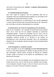 2/5 Unter diesen Voraussetzungen kann „Flüchtig“ in folgenden Fallkonstellationen angenommen werden: 2.1 Anlaufbescheinigung nicht gefolgt Nach einem Aufgriff mit Asylgesuch durch die aufgreifende Stelle wird der Antragsteller mittels einer Anlaufbescheinigung verpflichtet, sich unverzüglich bei der nächstgelegenen Erstaufnahmeeinrichtung zu melden. Sollte sich der Antragsteller bis zur Zustimmung durch den ersuchten Mitgliedstaat zu keinem Zeitpunkt gemeldet haben (Erstaufnahmeeinrichtung oder Außenstelle), gilt er als flüchtig und es gilt eine Überstellungsfrist von 18 Monaten. 2.2 Nichterscheinen zum Termin der Antragstellung, keine ubv-Meldung Sollte sich der Antragsteller in der zuständigen Erstaufnahmeeinrichtung gemeldet haben, wird er durch das AVS der jeweiligen Außenstelle zur persönlichen Antragstellung geladen. Erscheint der Antragsteller nicht zum Termin, muss der zuständige Dublin-SB eigenständig Nachprüfungen durchführen und klären, ob der Antragsteller unbekannt verzogen ist. Im Anschluss ist das Ergebnis der Sachaufklärung in einem Aktenvermerk festzuhalten. Wird in der Sachaufklärung festgestellt, dass der Antragsteller unbekannt verzogen ist, gilt eine Überstellungsfrist von 18 Monaten. 2.3 Der Antragsteller ist „unbekannt verzogen“ Wird der Antragsteller von der ABH unabhängig von einem Überstellungstermin (s. hierzu 4.) ohne weitere Begründung als unbekannt verzogen gemeldet, ist bei der ABH nachzufragen, aufgrund welches Umstandes die Meldung als „unbekannt verzogen“ erfolgte. Im Anschluss ist das Ergebnis der Sachaufklärung in einem Aktenvermerk festzuhalten. Ist in der PZU vermerkt, dass der Empfänger unter der angegebenen Adresse nicht ermittelt werden konnte, muss der Dublin-SB bei der zuständigen ABH nachfragen, ob der Antragsteller unbekannt verzogen ist. Allein der Vermerk in der PZU ist nicht geeignet, um von einem „Fortzug nach unbekannt“ auszugehen. Flüchtigsein / Untertauchen Stand 07/19