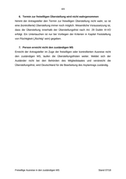 4/4 6. Termin zur freiwilligen Überstellung wird nicht wahrgenommen Nimmt der Antragsteller den Termin zur freiwilligen Überstellung nicht wahr, so ist eine (kontrollierte) Überstellung immer noch möglich. Wesentliche Voraussetzung ist, dass die Überstellung innerhalb der Überstellungsfrist nach Art. 29 Dublin III-VO erfolgt. Ein Untertauchen ist nur bei Vorliegen der Kriterien in Kapitel Feststellung von Flüchtigkeit („flüchtig“ sein) gegeben. 7. Person erreicht nicht den zuständigen MS Erreicht der Antragsteller im Zuge der freiwilligen oder kontrollierten Ausreise nicht den zuständigen MS, laufen die Überstellungsfristen weiter. Meldet sich der Ausländer nicht bei den Behörden des Mitgliedstaates und verstreicht die Überstellungsfrist, wird Deutschland für die Bearbeitung des Asylantrags zuständig. Freiwillige Ausreise in den zuständigen MS Stand 07/18