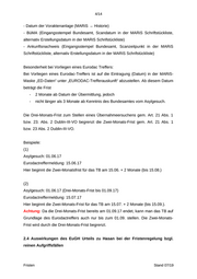 4/14 - Datum der Voraktenanlage (MARiS → Historie) - BüMA (Eingangsstempel Bundesamt, Scandatum in der MARiS Schriftstückliste, alternativ Erstellungsdatum in der MARiS Schrifstückliste) - Ankunftsnachweis (Eingangsstempel Bundesamt, Scanzeitpunkt in der MARiS Schriftstückliste, alternativ Erstellungsdatum in der MARiS Schrifstückliste) Besonderheit bei Vorliegen eines Eurodac Treffers: Bei Vorliegen eines Eurodac-Treffers ist auf die Eintragung (Datum) in der MARiS- Maske „ED-Daten“ unter „EURODAC-Trefferauskunft“ abzustellen. Ab diesem Datum beträgt die Frist - 2 Monate ab Datum der Übermittlung, jedoch - nicht länger als 3 Monate ab Kenntnis des Bundesamtes vom Asylgesuch. Die Drei-Monats-Frist zum Stellen eines Übernahmeersuchens gem. Art. 21 Abs. 1 bzw. 23. Abs. 2 Dublin-III-VO begrenzt die Zwei-Monats-Frist gem. Art. 21 Abs. 1 bzw. 23 Abs. 2 Dublin-III-VO. Beispiele: (1) Asylgesuch: 01.06.17 Eurodactreffermeldung: 15.06.17 Hier beginnt die Zwei-Monatsfrist für das TB am 15.06. + 2 Monate (bis 15.08.) (2) Asylgesuch: 01.06.17 (Drei-Monats-Frist bis 01.09.17) Eurodactreffermeldung: 15.07.17 Hier beginnt die Zwei-Monats-Frist für das TB am 15.07. + 2 Monate (bis 15.09.). Achtung: Da die Drei-Monats-Frist bereits am 01.09.17 endet, kann man das TB auf Grundlage des Eurodactreffers auch nur bis zum 01.09. stellen. Die Zwei-Monats- Frist wird durch die Drei-Monats-Frist begrenzt. 2.4 Auswirkungen des EuGH Urteils zu Hasan bei der Fristenregelung bzgl. reinen Aufgriffsfällen Fristen Stand 07/19