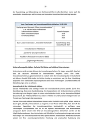 25 der Ausarbeitung und Überprüfung von Rechtsvorschriften in allen Bereichen immer auch die potentiellen Auswirkungen auf Forschung und Innovation hinreichend berücksichtigt werden. Neue Forschungs- und innovationspolitische Initiativen 2018-2021 Dachprogramm/-konzept „Offene Innovationskultur“ 2019 u. a. mit den neuen Maßnahmen - Zukunftscluster-Initiative Ausschreibungen: - Open Innovation-Campus 2018 - Forschungscampus 2019 2020 Bund-Länder-Förderinitiative „ Innovative Hochschule“ Ausschreibung der 2. Auswahlrunde 2021 Innovationsforen Mittelstand Agentur für Sprunginnovationen Reallabore für Soziale Innovationen (RESI) … [Ergänzungen Ressorts] … Unternehmergeist stärken: Aufwind für kleine und mittlere Unternehmen. Unternehmen sind zentrale Akteure des Innovationsgeschehens. Sie tragen wesentlich dazu bei, dass die deutsche Wirtschaft im internationalen Vergleich durch eine hohe Innovationsorientierung gekennzeichnet ist. Jedoch sinkt die Innovatorenquote in Deutschland seit Jahren. Obwohl 2016 wieder ein leichter Anstieg zu verzeichnen war, ist diese Entwicklung angesichts eines wachsenden Anpassungsdrucks durch neue Technologien, Geschäftsmodelle und Dienstleistungen ernst zu nehmen. Innovationskraft des Mittelstands stärken Gerade Mittelständler sind wichtige Treiber der Innovationskraft unseres Landes. Durch ihre Spezialisierung, ihre starke Kundenbindung, ihre Kooperationen mit Großunternehmen und ihre Verankerung in der Region tragen sie einen entscheidenden Anteil an der Innovationsfähigkeit Deutschlands. Der Mittelstand führt neue Ideen in Märkte ein und hat einen wichtigen Anteil am Transfer von Forschung in die Anwendung. Gerade kleine und mittlere Unternehmen können mehr Flexibilität und Agilität zeigen, wenn es darum geht, schnell auf Innovationen zu reagieren. In der Praxis fehlen KMU allein aber oft die notwenigen Kapazitäten, das Innovationsgeschehen kontinuierlich zu verfolgen, neue Technologien auszuprobieren und sie an die eigenen Anforderungen und Arbeitsabläufe anzupassen. Damit wieder mehr KMU am Innovationsgeschehen teilnehmen, werden wir die Möglichkeiten ausbauen, dass Hochschulen und öffentliche Forschungseinrichtungen als zentrale Forschungs- und Innovationspartner für KMU agieren können. Insbesondere die Fachhochschulen spielen mit ihrer anwendungsorientierten Forschung und praxisnahen Ausbildung eine