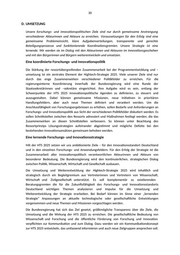 30 D. UMSETZUNG Unsere forschungs- und innovationspolitischen Ziele sind nur durch gemeinsame Anstrengung verschiedener Akteurinnen und Akteure zu erreichen. Voraussetzungen für den Erfolg sind eine gemeinsame Problemeinsicht, klare Aufgabenverteilungen, transparente und gerechte Beteiligungsprozesse und funktionierende Koordinationsgremien. Unsere Strategie ist eine lernende. Wir werden sie im Dialog mit den Akteurinnen und Akteuren im Innovationsgeschehen und mit den Bürgerinnen und Bürgern weiterentwickeln und umsetzen. Eine koordinierte Forschungs- und Innovationspolitik Die Stärkung der ressortübergreifenden Zusammenarbeit bei der Programmentwicklung und – umsetzung ist ein zentrales Element der Hightech-Strategie 2025. Viele unserer Ziele sind nur durch das enge Zusammenwirken verschiedener Politikfelder zu erreichen. Für die regierungsinterne Koordinierung innerhalb der Bundesregierung wird eine Runde der Staatssekretärinnen und –sekretäre eingerichtet. Ihre Aufgabe wird es sein, entlang der Schwerpunkte der HTS 2025 innovationspolitische Agenden zu definieren, zu steuern und auszugestalten. Dabei können gemeinsame Missionen, neue Initiativen in prioritären Handlungsfeldern, aber auch neue Themen definiert und verankert werden. Um die Anschlussfähigkeit von Forschungsergebnissen zu erhöhen, sollen Bedarfe und Anforderungen an Forschungs- und Innovationspolitik aus Sicht der verschiedenen Politikfelder diskutiert werden. Es sollen Schnittstellen zwischen den Ressorts adressiert und Maßnahmen festlegt werden, die das Zusammenwirken an diesen Schnittstellen verbessern. So können unter Beachtung des Ressortprinzips Lösungsstrategien aufeinander abgestimmt und mögliche Defizite bei den bestehenden Innovationsansätzen gemeinsam behoben werden. Eine lernende Forschungs- und Innovationsstrategie Mit der HTS 2025 setzen wir uns ambitionierte Ziele – für den Innovationsstandort Deutschland und in den einzelnen Forschungs- und Anwendungsfeldern. Für den Erfolg der Strategie ist die Zusammenarbeit aller innovationspolitisch verantwortlichen Akteurinnen und Akteure von besonderer Bedeutung. Die Bundesregierung wird den kontinuierlichen, strategischen Dialog zwischen Politik, Wissenschaft, Wirtschaft und Gesellschaft ausbauen. Die Umsetzung und Weiterentwicklung der Hightech-Strategie 2025 wird inhaltlich und strategisch durch ein Begleitgremium aus Vertreterinnen und Vertretern von Wissenschaft, Wirtschaft und Zivilgesellschaft unterstützt. Es soll komplementär zu existierenden Beratungsgremien die für die Zukunftsfähigkeit des Forschungs- und Innovationsstandorts Deutschland wichtigen Themen analysieren und Impulse für die Umsetzung und Weiterentwicklung der Strategie erarbeiten. Bei Bedarf können im Sinne einer „lernenden Strategie“ Anpassungen an aktuelle technologische oder gesellschaftliche Entwicklungen vorgenommen und neue Themen und Missionen vorgeschlagen werden. Die Bundesregierung hat sich das Ziel gesetzt, größtmögliche Transparenz über die Ziele, die Umsetzung und die Wirkung der HTS 2025 zu erreichen. Die gesellschaftliche Bedeutung von Wissenschaft und Forschung und die öffentliche Förderung von Forschung und Innovation verpflichten zur Kommunikation und zum Dialog. Dazu werden wir ein Kommunikationskonzept zur HTS 2025 entwickeln, das umfassend informieren und auch neue Zielgruppen ansprechen soll.