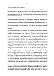 22 Wir stärken die Fachkräftebasis. Neue Forschungszweige und neue Technologien verlangen neue Fähigkeiten und Fertigkeiten von Forscherinnen und Forschern, Facharbeiterinnen und Facharbeitern. Die Bundesregierung wird sich für die Erweiterung der Fachkräftebasis in zukunftsweisenden Disziplinen, allen voran in den Datenwissenschaften, beispielsweise im Bereich der künstlichen Intelligenz einsetzen. Wir werden den wissenschaftlichen und technischen Nachwuchs in zukunftsweisenden MINT-Fächern vermehrt fördern und ihm aussichtsreiche Perspektiven für die berufliche Entwicklung eröffnen. Die Förderung neuer, aufstrebender Forschungsfelder wird Hand in Hand gehen mit der Förderung hochqualifizierter Köpfe auf dem jeweiligen Gebiet. Aus- und Weiterbildung werden wir dabei auf die Geschwindigkeit der modernen Forschungs- und Entwicklungszyklen ausrichten: Während früher auf ein Berufsziel hin ausgebildet wurde, werden heute Flexibilität, Interdisziplinarität und lebenslanges Lernen immer wichtiger. Wir verbinden die Förderung von Forschung und Innovation mit dem Einsatz für ein gutes Bildungssystem und exzellente Hochschulen. Es gilt heute, Data Science in allen Bereichen, insbesondere aber in den Hochschulen, auszubauen. Dazu muss der Umgang mit Daten zu einem zentralen eigenen Wissenschaftsfeld und einer eigenen Disziplin werden. Die Potenziale digitaler Bildung wollen wir bildungsbereichsübergreifend erschließen. Mit dem Digitalpakt Schule und der Förderung einer länderübergreifend funktionsfähigen Schulcloud treiben wir den Aufbau einer digitalen Bildungsinfrastruktur intensiv voran. Auch Hochschulen werden wir bei der Entwicklung und Umsetzung von Digitalisierungsstrategien unterstützen. Für die Lehre an Hochschulen haben Bund und Länder mit den aktuellen Beschlüssen zur Exzellenzstrategie, zur Finanzierung von 1.000 zusätzlichen Tenure-Track-Professuren und zum Professorinnenprogramm III weitreichende Weichenstellungen für die Zeit bis nach der laufenden Wahlperiode getroffen. Bis zum Jahr 2020 werden im Rahmen des Hochschulpakts mehr als 19 Mrd. Euro für 760.000 zusätzliche Studierende und über die DFG-Programmpauschale vom Bund insgesamt rund 2 Mrd. Euro für verbesserte Studienbedingungen und mehr Qualität in der Lehre zur Verfügung gestellt. Zudem wollen wir die MINT-Bildung stärken, beginnend mit der Elementarbildung über die Initiative „Haus der Kleinen Forscher“. Die Potenziale von Mädchen und Frauen wollen wir besonders fördern. Wir unterstützen den Aufbau eines bundesweiten MINT-E- Portals für mehr Transparenz und Information sowie die Entwicklung von Qualitätskriterien. Zudem wollen wir Wettbewerbe im MINT-Bereich weiter fördern. Mit einem modernen dualen Berufsausbildungssystem und der engeren Verbindung von beruflicher und akademischer Bildung stellt die Bundesregierung sicher, dass wir auch in der durch digitale Technologien geprägten Zukunft kompetente Mitarbeiterinnen und Mitarbeiter in deutschen Unternehmen haben werden. Dazu sollen vor allem die