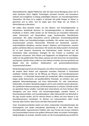 26 Ideenwettbewerbe, digitale Plattformen oder die Open Source-Bewegung setzen sich in vielen Bereichen durch. Digitale Technologien vernetzen Forscher und Innovatoren weltweit und ermöglichen es bislang unbeteiligten Akteuren, am Innovationsgeschehen mitzuwirken. Mit ihnen ist es möglich, in kürzester Zeit große Mengen an Wissen zu generieren und zu teilen. Und sie zeigen ganz neue Wege auf, um Wissen in Wertschöpfung zu übersetzen. Wir wollen diese Dynamik nutzen, um den Wissens- und Technologietransfer zu intensivieren, bestehende Barrieren im Innovationsgeschehen zu überwinden und Kreativität zu fördern. Dafür werden wir die Förderung von innovativen Netzwerken weiter intensivieren und themenoffene, junge, hochinnovative Zukunftscluster unterstützen. Wir wollen thematische Lock-ins aufbrechen, branchenübergreifende Ansätze fördern und Zukunftstechnologien erschließen. Wir werden neue Formen der Zusammenarbeit zwischen Wissenschaft, Wirtschaft und Gesellschaft, zwischen unterschiedlichen Disziplinen, zwischen Nutzern, Anbietern und Produzenten, zwischen großen und kleinen Akteuren unterstützen. Wir werden den Kulturwandel in Hochschulen hin zu einer besseren Verwertung von Erkenntnissen weiter forcieren und die Hochschulen dabei unterstützen, Strategien für den Transfer zu erarbeiten und konsequent umzusetzen. Dem Wissen und Engagement von Bürgerinnen und Bürgern wollen wir den gebührenden Platz bieten, genauso wie dem Know-how von Expertinnen und Experten. Darüber hinaus wollen wir neue Akteure erreichen und neue physische und digitale Orte der kreativen, kollaborativen und gemeinschaftsorientierten Zusammenarbeit fördern. Die Bundesregierung hat sich das Ziel gesetzt, eine offene Innovationskultur zu etablieren, die kreative Ideen fördert und ungenutzte innovative Potenziale in Deutschland mobilisiert. Deshalb werden wir die Öffnung von Wissens- und Innovationsprozessen unterstützen – in Wirtschaft, Wissenschaft und Gesellschaft. Offene Innovationsformen bergen große ökonomische und gesellschaftliche Potentiale, sie erfordern aber auch geeignete Rahmenbedingungen und einen Kulturwandel. Für viele Unternehmen, insbesondere mit hohem Spezialisierungsgrad, wird es auch weiterhin darauf ankommen, ihre spezifischen Wissensvorsprünge und Kernkompetenzen zu schützen. Deshalb werden wir geschützte Räume schaffen, innerhalb derer Unternehmen mit ihren Partnern offen interagieren und neue Schutz- und Verwertungsstrategien erproben können. In Demonstrationsvorhaben und Innovationslaboren sollen Wissenschaft und Wirtschaft in die Lage versetzt werden, sich für externes Wissen zu öffnen und neue Akteure in die Innovationsprozesse einzubinden. Im Rahmen von Campusansätzen sollen Crowd Sourcing, Open Science, Open Access und Open Data erprobt werden. Unser Innovationsverständnis basiert auf einem umfassenden Innovationskonzept, das technologische und soziale Innovationen gleichwertig in den Blick nimmt. Neue Geschäftsmodelle, organisatorische Praktiken oder neue Formen des Lernens, Arbeitens und Zusammenlebens können eine größere Wirkmacht haben als einzelne Technologien. Häufig bedingen sie einander. Deshalb werden wir die Forschungsförderung verstärkt für