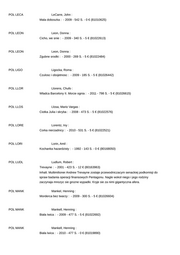 POL MARQ Marquez, Gabriel Garcia : Jesien patriarchy : - 2000 - 274 S. - 0 € (81010511) POL MART Martel, Yann : Zycie Pi : - 2013 - 22 € (3657539) POL MART Martel, Yann : Historia rodziny Roccamatio : - 2004 - 185 S. - 9 € (80163928) Inhalt: W powiesci zawieraja sie cztery gleboko poruszajace opowiesci, jedna bardziej niezwykla od drugiej. POL MICH Michalak, Katarzyna : Zmyslona : - 2010 - 302 S. - 5 € (81026534) POL MICH Michorzewski, Slawek : Wspulnicy : - 2010 - 236 S. - 5 € (81026591) POL MOOR Moore, Christopher : Ssij, mala, Ssij : - 2008 - 349 S. - 5 € (81022727) POL MORR Morrell, David : Akt desperacji : - 2008 - 445 S. - 0 € (81019071) POL MORR Morrell, David : Falszywa tozsamosc : - 2009 - 502 S. - 5 € (81022657) POL MOSS Mosse, Kate : Grobowiec : - 2008 - 518 S. - 0 € (81009905) POL NEWM Newman, Ruth : Bal absolwentow : - 2008 - 269 S. - 5 € (81026556) POL NIEZ Niezgoda, Agnieszka : Dobra nocka : - 2009 - 314 S. - 0 € (81010500) POL NISB Nisbet, Jim : Kodeks kartaginski : - 2008 - 477 S. - 5 € (81022598)