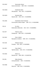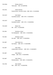 POL NOSZ Noszczynska, Danuta : Hormon nieszczescia : - 2008 - 336 S. - 5 € (81026567) POL NOWA Nowakowski, Marek : Silna goraczka : - 2012 - 332 S. - 5 € (81026578) POL NURO Nurowska, Maria : Nakarmic wilki : - 2010 - 251 S. - 5 € (81026580) POL OSSE Ossendowski, Antoni Ferdynand : Przez kraj ludzi, zwierzat i bogow : - 2008 - 271 S. - 0 € (81010588) POL OZ Oz, Amos : Dotknij wiatru, dotknij wodu : - 2011 - 151 S. - 5 € (81026661) POL PATT Patterson, James : Podwojna gra : - 2009 - 365 S. - 0 € (81019800) POL PESC Pesco, Umberto : Ryba plynie zu morderca : - 2008 - 237 S. - 5 € (81022681) POL PLEB Plebanek, Grazyna : Przystupa : - 2012 - 393 S. - 5 € (81026650) POL PREY Preys, Robert T. : Tajemnice sahary : - 2010 - 272 S. - 0 € (81010555) POL RANK Rankin, Ian : Memento mori : - 2008 - 500 S. - 5 € (81022740) POL RIPL Ripley, Alexandra : Corka peirworodna : - 469 S. - 5 € (81022624) POL ROBE Roberts, Nora : Wiezy krwi : - 2009 - 446 S. - 0 € (81019833)