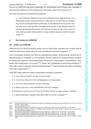 Deutscher Bundestag 18. Wahlperiode 1117 Drucksache 18/12850 Auch die im AFRICOM eingesetzten Angehörigen der US-Streitkräfte sind im Rahmen ihres Aufenthalts in 6917 Deutschland den Regeln des NATO-Truppenstatuts, insbesondere Artikel II NTS unterworfen. Der Zeuge Sohm hat hierzu zusammenfassend ausgeführt: Vorabfassung - wird durch die endgültige Fassung ersetzt. [ ] die Amerikaner [haben] mit uns einen Aufenthaltsvertrag, aufgrund dessen sie in Deutschland Truppen stationieren können. Es gibt dann die Art und Weise der Stationie- rung, also die bestehenden Rechte und Pflichten, wie das abläuft; die sind im NATO-Trup- pen-statut und in einem speziellen Zusatzabkommen geregelt. In dem Rahmen können sie natürlich eigenständige Dienststellen und Strukturen errichten, die dann nicht, soweit ich weiß, durch gesonderte völkerrechtliche Verträge nochmals gesondert rechtlich verankert 6918 werden. c) Die Funktion des AFRICOM aa) Aufbau von AFRICOM AFRICOM wird von einem Kommandeur geleitet, dem zwei Stellvertreter zugeordnet sind, von denen einer für 6919 militärische Operationen und der andere für zivile und militärische Aktivitäten zuständig ist. Neben verschiedenen Stabsbüros (etwa Büro des außenpolitischen Beraters, Rechtsabteilung, Abteilung für Öf- fentlichkeitsarbeit) ist AFRICOM in sechs Direktorate unterteilt: Direktorat für Außenbeziehungen, Direktorat für Planung und Programme, Nachrichtendirektorat, Direktorat für computergestütze Kommunikations-, Kom- 6920 6921 mando- und Controllsysteme (C4 Systems ), Einsatz- und Logistikdirektorat und Ressourcendirektorat. 6922 Ferner gibt es mehrere sogenannte Regionale Integrationsteams. Jedem Direktorat sind mehrere Abteilungen 6923 (Divisions) untergeordnet. AFRICOM verfügt zudem über mehrere untergeordnete Kommandos, namentlich: U. S. Army Africa (USARAF), mit Sitz in Vicenza, Italien U. S. Naval Forces Africa (NAVAF), mit Hauptquartier in Neapel, Italien U. S. Air Forces Africa (USAFAF), mit Sitz in Ramstein U. S. Marine Corps Forces Africa (MARFORAF) mit Sitz in Stuttgart Combined Joint Task Force-Horn of Africa (CJTF-HOA), mit Sitz in Camp Lemonnier, Dschibuti 6924 U. S. Special Operations Command Africa (SOCAFRICA), mit Sitz in Stuttgart. 6917) Sachstandszusammenfassung zu AFRICOM und AOC der US-Streitkräfte in Deutschland aus dem Jahr 2013, MAT A AA-3/1a_2, Bl. 80 (VS-NfD insoweit offen). 6918) Sohm, Protokoll-Nr. 86 I, S. 97. 6919) Übersicht Kommandostruktur USAFRICOM aus dem Januar 2009, MAT A BND-2/3a, Bl. 139 (VS-NfD insoweit offen). 6920) Vgl. Department of Defense, Dictionary of Military and Associated Terms, Stand: Mai 2017, abrufbar unter www.dtic.mil/doc- trine/new_pubs/dictionary.pdf, S. 273. 6921) Übersicht Kommandostruktur USAFRICOM aus dem Januar 2009, MAT A BND-2/3a, Bl. 139 (VS-NfD insoweit offen). 6922) Übersicht Kommandostruktur USAFRICOM aus dem Januar 2009, MAT A BND-2/3a, Bl. 139 (VS-NfD insoweit offen). 6923) Übersicht Kommandostruktur USAFRICOM aus dem Januar 2009, MAT A BND-2/3a, Bl. 139 (VS-NfD insoweit offen). 6924) Englischsprachige Hintergrundinformation zu AFRICOM vom 27. Juni 2013, MAT A BMVg-3/8a, Bl. 14 (55 f.), (VS-NfD insoweit offen).