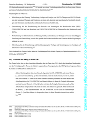 Deutscher Bundestag 18. Wahlperiode 1119 Drucksache 18/12850 6932 diplomatischer Beratungen (only in full diplomatic consultation) mit den Partnern Präsenz zeigen. Auf An- forderung solle AFRICOM eine Unterstützerrolle für US- und internationale Organisationen spielen, die an der 6933 Verbesserung der humanitären Situation in Afrika arbeiten. AFRICOM verstand sich ursprünglich als (einziges) Regionalkommando ohne kinetic mission, d. h. es hatte Vorabfassung - wird durch die endgültige Fassung ersetzt. mit Ausnahme von 2 000 Soldaten der Combined Joint Task Force Horn of Africa keine eigenen Kräfte 6934 6935 unterstellt. Bei Bedarf musste sich AFRICOM Kräfte von EUCOM ausborgen. Als Konsequenz aus den Ereignissen am 11. September 2012 in Bengasi (Libyen), als bei einem Angriff auf das 6936 dortige US-Konsulat u. a. der US-Botschafter in Libyen starb , wurden dem Oberbefehlshaber von AFRICOM 6937 am 1. Oktober 2012 sog. Commanders In-extremis Forces (CIF) unterstellt. Bei diesen handelte es sich um besonders ausgebildete und bewaffnete Spezialkräfte für die Einsatzarten Direct Action und Counter Terro- 6938 rism. CIFs bestehen i. d. R. aus Kräften in Kompaniestärke, die sich wiederum aus 4 bis 6 Operational De- 6939 tachement Teams zu je zwölf Mann zusammensetzen. Die Kräfte sollten in Böblingen stationiert werden, aber 6940 extrem schnell verlegbar sein. d) Kontakte und Verbindungen der Bundeswehr und des BMVg zu AFRICOM aa) Das Verbindungskommando der Bundeswehr Mit Schreiben vom 3. Juni 2009 lud der Kommandeur von AFRICOM den Generalinspekteur der Bundeswehr 6941 ein, einen deutschen Verbindungsoffizier im Dienstgrad eines Obersts in das Kommando zu entsenden. Bereits seit Mitte der 1990er Jahr hatte ein sogenanntes Verbindungskommando (VKdo) der Bundeswehr bei 6942 USEUCOM in Stuttgart bestanden. Grundlage hierfür war ein Memorandum of Agreement (MoA) zwischen 6943 dem BMVg und dem Verteidigungsministerium der USA vom 12. Juli 1996. Auf Befehl des damaligen Generalinspekteurs der Bundeswehr nahm der deutsche Verbindungsoffizier bei EU- 6944 COM seit dem 26. Juli 2009 die Aufgaben des Verbindungsoffiziers bei AFRICOM als Zweitfunktion wahr. Ende 2012 wurde das VKdo unter Umbenennung in DEU VKdo USEUCOM/AFRICOM offiziell auf das neue 6932) AFRICOMs Guiding Principles vom 7. Dezember 2007, MAT A BND-2/3a, Bl. 73 (74). 6933) AFRICOMs Guiding Principles vom 7. Dezember 2007, MAT A BND-2/3a, Bl. 73 (74). 6934) Hintergrundinformation zu USAFRICOM der politischen Abteilung des BMVg vom 27. Mai 2013, MAT A BMVg-3/1g, Bl. 66 (67), (VS-NfD insoweit offen). 6935) Hintergrundinformation zu USAFRICOM der politischen Abteilung des BMVg vom 27. Mai 2013, MAT A BMVg-3/1g, Bl. 66 (67), (VS-NfD insoweit offen). 6936) Spiegel Online vom 13. September 2012, So lief der Angriff auf das US-Konsulat in Bengasi. 6937) Hintergrundinformation zu USAFRICOM der politischen Abteilung des BMVg vom 27. Mai 2013, MAT A BMVg-3/1g, Bl. 66 (67), (VS-NfD insoweit offen). 6938) Hintergrundinformation zu USAFRICOM der politischen Abteilung des BMVg vom 27. Mai 2013, MAT A BMVg-3/1g, Bl. 66 (67), (VS-NfD insoweit offen). 6939) Hintergrundinformation zu USAFRICOM der politischen Abteilung des BMVg vom 27. Mai 2013, MAT A BMVg-3/1g, Bl. 66 (67), (VS-NfD insoweit offen). 6940) Hintergrundinformation zu USAFRICOM der politischen Abteilung des BMVg vom 27. Mai 2013, MAT A BMVg-3/1g, Bl. 66 (67), (VS-NfD insoweit offen). 6941) Hintergrundinformation zu USAFRICOM der politischen Abteilung des BMVg vom 27. Mai 2013, MAT A BMVg-3/1g, Bl. 66 (68), (VS-NfD insoweit offen). 6942) Antwortentwurf des BMVg zur Kleinen Anfrage der Fraktion DIE LINKE. vom 14. Juni 2013, BT-Drs. 17/14047, MAT A BMVg-3/1k, Bl. 136 (137). 6943) Antwortentwurf des BMVg zur Kleinen Anfrage der Fraktion DIE LINKE. vom 14. Juni 2013, BT-Drs. 17/14047, MAT A BMVg-3/1k, Bl. 136 (137). 6944) Antwortentwurf des BMVg zur Kleinen Anfrage der Fraktion DIE LINKE. vom 14. Juni 2013, BT-Drs. 17/14047, MAT A BMVg-3/1k, Bl. 136 (137); Hintergrundinformation zu USAFRICOM der politischen Abteilung des BMVg vom 27. Mai 2013, MAT A BMVg-3/1g, Bl. 66 (68), (VS-NfD insoweit offen).