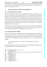Deutscher Bundestag 18. Wahlperiode 1135 Drucksache 18/12850 7101 7102 2C63 (vormals: AD40, dann BC40): Wiesbaden (vor 2008: Mainz) und 7103 2C64 (vormals: AD20, dann BC20): Nürnberg . Die Zuständigkeit der Außenstellen war örtlich bestimmt und bezog sich auf den Aufenthaltsort der zu befragen- den Person. So hat der Zeuge U. P. bekundet, die Außenstelle Berlin sei für die neuen Bundesländer sowie Ham- Vorabfassung - wird durch die endgültige Fassung ersetzt. 7104 burg und Schleswig-Holstein zuständig gewesen. 7105 Die Außenstelle Friedland wurde im Jahr 2010 als Nebenstelle der Außenstelle Berlin angeschlossen , aber 7106 erhalten, weil sich dort das Bundesverwaltungsamt als Anlaufstelle für alle Aussiedler befand. Aufgrund all- gemein rückläufiger Zahlen bei der Befragungsklientel und dem damit einhergehenden Rückgang wertiger Be- 7107 schaffungsergebnisse sowie im Besonderen wegen örtlicher Zuständigkeitsüberschneidungen mit der Außen- 7108 stelle Berlin wurde Ende 2009 die Auflösung der Außenstelle Hannover empfohlen. Nachdem zunächst ferner 7109 die Auflösung der Außenstelle Nürnberg für organisatorisch angezeigt befunden worden war , wurde schließ- 7110 lich die Auflösung der Außenstelle Wiesbaden betrieben. Die zwei verbliebenen Außenstellen in Berlin und 7111 Nürnberg wurden als Außenstelle Nord und Außenstelle Süd geführt. Aus den Bekundungen des Zeugen R. C. ergibt sich, dass es in jeder Außenstelle einen Leiter, einen stellvertre- tenden Leiter, mehrere Befrager und Verwaltungspersonal gab. Unter den Befragern gab es sogenannte Befrager- führer, die keine formelle Vorgesetztenposition innehatten, aber für die Befrager die Funktion einer Fachaufsicht 7112 ausübten. cc) Anzahl der Mitarbeiterinnen und Mitarbeiter der HBW 7113 Die Zeugin A. K. hat bekundet, bei der Übernahme des Referats EAC im Jahr 2008 durch sie seien bei der 7114 HBW etwa 100 Personen beschäftigt gewesen. Davon seien etwa 50 Personen Befrager des BND, etwa zehn 7115 Befrager der AND und die übrigen Verwaltungspersonal gewesen. Nach Auskunft der Bundesregierung waren 7116 im Jahr 2012 noch insgesamt 52 und bis zur Auflösung der HBW zum 30. Juni 2014 [siehe hierzu unter 7117 H.II.1.h)bb)] noch 40 Mitarbeiter bei der HBW tätig. 7101) Konzeptionsvorschlag für die Veränderungen im Befragungswesen, Anlage 1 zur Entscheidungsvorlage vom 18. November 2009, MAT A BND-2/5c, Bl. 87 (99), (VS-NfD insoweit offen). 7102) Vgl. Konzeptionsvorschlag für die Veränderungen im Befragungswesen, Anlage 1 zur Entscheidungsvorlage vom 18. November 2009, MAT A BND-2/5c, Bl. 87, (99), (VS-NfD insoweit offen). 7103) Konzeptionsvorschlag für die Veränderungen im Befragungswesen, Anlage 1 zur Entscheidungsvorlage vom 18. November 2009, MAT A BND-2/5c, Bl. 87 (100), (VS-NfD insoweit offen). 7104) U. P., Protokoll-Nr. 110 I, S. 67 f. 7105) Vgl. Organisatorische Stellungnahme des Organisationsreferats des BND ZYE vom 21. Mai 2010, MAT A BND-8a, Bl. 80 (87), (VS- NfD insoweit offen). 7106) Konzeptionsvorschlag für die Veränderungen im Befragungswesen, Anlage 1 zur Entscheidungsvorlage vom 18. November 2009, MAT A BND-2/5c, Bl. 87 (103), (VS-NfD insoweit offen). 7107) Konzeptionsvorschlag für die Veränderungen im Befragungswesen, Anlage 1 zur Entscheidungsvorlage vom 18. November 2009, MAT A BND-2/5c, Bl. 87 (92), (VS-NfD insoweit offen). 7108) Konzeptionsvorschlag für die Veränderungen im Befragungswesen, Anlage 1 zur Entscheidungsvorlage vom 18. November 2009, MAT A BND-2/5c, Bl. 87 (98), (VS-NfD insoweit offen). 7109) Konzeptionsvorschlag für die Veränderungen im Befragungswesen, Anlage 1 zur Entscheidungsvorlage vom 18. November 2009, MAT A BND-2/5c, Bl. 87 (101), (VS-NfD insoweit offen). 7110) Leitungsvorlage des Organisationsreferats des BND ZYE vom 4. Oktober 2010, MAT A BND-8a, Bl. 122 f. (VS-NfD insoweit offen); vgl. auch Verfügung des Referats 611 im Bundeskanzleramt vom 6. April 2011, MAT A BK-2/8e, Bl. 68 (71), (VS-NfD insoweit offen). 7111) Vgl. Schreiben des BND an das Bundeskanzleramt vom 2. Februar 2011, MAT A BK-2/8e, Bl. 56 (63f.), (VS-NfD insoweit offen). 7112) R. C., Protokoll-Nr. 110 I, S. 9; U. P., Protokoll-Nr. 110 I, S. 67. 7113) Vgl. A. K., Protokoll-Nr. 64 I, S. 7. 7114) A. K., Protokoll-Nr. 67 I Teil 2, S. 19. 7115) A. K., Protokoll-Nr. 64 I, S. 13. 7116) Antwort der Bundesregierung auf eine Kleine Anfrage der Fraktion DIE LINKE. vom 21. November 2012, BT-Drs. 17/11597, S. 2. 7117) Antwort der Bundesregierung auf eine Kleine Anfrage der Fraktion DIE LINKE. vom 11. April 2014, BT-Drs. 18/1135, S. 2.