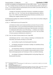 Deutscher Bundestag 18. Wahlperiode 1138 Drucksache 18/12850 5. der Beeinträchtigung der Geldwertstabilität im Euro-Währungsraum durch im Aus- land begangene Geldfälschungen oder 6. der international organisierten Geldwäsche in Fällen von erheblicher Bedeutung Vorabfassung - wird durch die endgültige Fassung ersetzt. rechtzeitig zu erkennen und einer solchen Gefahr zu begegnen. Ab dem 5. August 2009 kamen als weitere zu entsprechenden Maßnahmen berechtigende Sachverhalte die Gefahr bestimmter Fälle von gewerbs- oder bandenmäßigem Einschleusen ausländischer Personen in das Gebiet der Eu- 7130 ropäischen Union mit Bezug zur Bundesrepublik Deutschland hinzu. § 8 Abs. 3 Satz 1 BNDG lautet: Der Bundesnachrichtendienst darf nach § 18 Abs. 3 des Bundesverfassungsschutzgesetzes jede Behörde um die Übermittlung der zur Erfüllung seiner Aufgaben erforderlichen Infor- mationen einschließlich personenbezogener Daten ersuchen und nach § 18 Abs. 4 des Bun- desverfassungsschutzgesetzes amtlich geführte Register einsehen, soweit es zu Erfüllung seiner Aufgaben erforderlich ist. § 18 Abs. 3 und 4 des Bundesverfassungsschutzgesetzes haben folgenden Wortlaut: (3) Das Bundesamt für Verfassungsschutz darf zur Erfüllung seiner Aufgaben die Staatsanwaltschaften und, vorbehaltlich der staatsanwaltschaftlichen Sachleitungsbefug- nis, die Polizeien sowie andere Behörden um Übermittlung der zur Erfüllung seiner Auf- gaben erforderlichen Informationen einschließlich personenbezogener Daten ersuchen, wenn sie nicht aus allgemein zugänglichen Quellen oder nur mit übermäßigem Aufwand oder nur durch eine den Betroffenen stärker belastende Maßnahme erhoben werden kön- nen. Unter den gleichen Voraussetzungen dürfen Verfassungsschutzbehörden der Länder 1. Behörden des Bundes und der bundesunmittelbaren juristischen Personen des öf- fentlichen Rechts, 2. Staatsanwaltschaften und, vorbehaltlich der staatsanwaltschaftlichen Sachleitungs- befugnis, Polizeien des Bundes und anderer Länder um die Übermittlung solcher Informa- tionen ersuchen. [ ] (4) Würde durch die Übermittlung nach Absatz 3 Satz 1 der Zweck der Maßnahme ge- fährdet oder der Betroffene unverhältnismäßig beeinträchtigt, darf das Bundesamt für Ver- fassungsschutz bei der Wahrnehmung der Aufgaben nach § 3 Abs. 1 Nr. 2 bis 4 sowie bei der Beobachtung terroristischer Bestrebungen amtliche Register einsehen. In einer E-Mail an das BMI vom 18. Februar 2014 führt das BAMF eingehender aus, dass § 8 Abs. 1 BNDG im Hinblick auf die Einschränkungen in den dortigen Ziffern 1 und 2 eine pauschale Datenübermittlung an den BND durch das BAMF nicht zulasse und diese daher auch nicht erfolge. Vielmehr habe der BND anhand bestimmter 7130) Eingefügt durch Art. 1 Nr. 4 Buchstabe b des Erste Gesetz zur Änderung des Artikel 10-Gesetzes vom 31. Juli, BGBl. 2009 I, S. 2500.