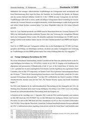 Deutscher Bundestag – 18. Wahlperiode – 247 – Drucksache 18/12850 jede Örtlichkeit, auf die sich die elektronische Überwachung richtet, von einer fremden Macht oder einem Agenten einer fremden Macht genutzt wird, - Vorschläge für „Minimierungsverfahren“ (minimization procedures), - eine Darstellung der Art der begehrten Information und die Art der Kommunikationen oder Aktivi- täten, die Gegenstand der Überwachung sein sollen, - eine Bescheinigung durch einen speziellen Beamten, o dass dieser die begehrten Informationen für „ausländische Nachrichtendienstinformatio- nen“ (foreign intelligence information) hält, o dass die Gewinnung ausländischer Nachrichtendienstinformationen ein „wesentliches Ziel“ (significant purpose) der Überwachungsmaßnahme ist, und o dass solche Informationen vernünftigerweise nicht mit „normalen investigativen Techni- ken“ (normal investigative techniques) gewonnen werden können. Der Begriff „ausländische Nachrichtendienstinformationen“ ist weit angelegt. Nach seiner gesetzlichen De- 783 finition umfasst er: - Informationen, die sich beziehen auf oder – wenn sie eine „US-Person“ betreffen – erforderlich sind für die Fähigkeit der USA, sich zu verteidigen gegen: o eine aktuelle oder potentielle Attacke oder andere schwerwiegende feindliche Akte einer fremden Macht oder eines Agenten einer fremden Macht; o Sabotage, internationalen Terrorismus oder die Proliferation von Massenvernichtungswaf- 784 fen durch eine fremde Macht oder einen Agenten einer fremden Macht; oder o geheime nachrichtendienstliche Aktivitäten eines Nachrichtendienstes oder Netzwerks ei- ner fremden Macht oder eines Agenten einer fremden Macht; - Informationen im Hinblick auf eine fremde Macht oder ein fremdes Territorium, die sich beziehen auf oder – wenn sie eine „US-Person“ betreffen – erforderlich sind für: o die nationale Verteidigung oder die Sicherheit der USA oder o die Pflege der auswärtigen Beziehungen der USA. „Minimierungsverfahren“ sind nach ihrer gesetzlichen Definition Verfahren, die dazu dienen, die Gewin- nung, Speicherung und Weitergabe von Informationen über US-Personen so weit wie möglich einzuschrän- 785 ken. Nach den Angaben des Sachverständigen Halperin tragen diese Verfahren zum Schutz der Kommu- nikation bestimmter Berufsgruppen wie Ärzte, Rechtsanwälte oder Politiker bei, ohne diesen allerdings einen 786 absoluten Überwachungsschutz zu vermitteln. 783) 50 U.S.C. § 1801 (e). 784) Der Passus „Proliferation von Massenvernichtungswaffen“ wurde im Jahr 2008 durch Section 110 (a) (3) FAA eingefügt. 785) Siehe 50 U.S.C. § 1801 (h). 786) Mündliche Erläuterungen des Sachverständigen Halperin, Protokoll-Nr. 108 I, S. 130.