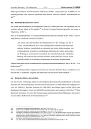 Deutscher Bundestag – 18. Wahlperiode – 273 – Drucksache 18/12850 ddd) Data Protection Act 1998 (DPA) Der im Jahr 1998 verabschiedete Data Protection Act (DPA) setzte die EU-Datenschutzrichtlinie aus dem 953 954 Jahr 1995 um. Er sieht materielle Datenschutzgrundsätze, aber auch zahlreiche Ausnahmeregelungen vor. So sind gemäß Section 28 Subsection 1 DPA Ausnahmen von den Datenschutzgrundsätzen des DPA zuläs- sig, soweit diese zum Schutz der nationalen Sicherheit erforderlich sind. Gemäß Section 28 Subsection 2 DPA ist das anzunehmen, wenn ein von einem Minister der Krone unterzeichnetes Zertifikat erklärt, be- stimmte Ausnahmen seien zum Schutz der nationalen Sicherheit erforderlich. Gemäß Section 28 Subsection 4 DPA bleibt allerdings die gerichtliche Überprüfung eines solchen Zertifikats möglich. eee) Human Rights Act 1998 (HRA) Im Jahr 1998 ist der Human Rights Act (HRA) in Kraft getretenen, dem verfassungsähnliche Wirkung zu- 955 kommt. Gemäß Section 6 HRA sind die britischen Behörden dazu verpflichtet, die Vorgaben der Europäischen Men- schenrechtskonvention (EMRK) einzuhalten. Gemäß Section 7 HRA können sich Personen, die von einer der EMRK widersprechenden behördlichen Handlung betroffen sind, gegenüber den zuständigen Gerichten auf die Geltung der EMRK berufen. 956 Gemäß Section 4 HRA dürfen bestimmte höhere Gerichte eine sogenannte Unvereinbarkeitsfeststellung (declaration of incompatibility) treffen, wenn sie zu der Auffassung gelangen, dass eine innerstaatliche Vor- schrift nicht mit der EMRK vereinbar ist. Allerdings zieht diese Feststellung weder die Unwirksamkeit der betreffenden Vorschrift noch die der darauf beruhenden Behördenhandlung nach sich. Auch ist sie für die Parteien des Rechtsstreits nicht bindend. Vielmehr hat es allein das britische Parlament in der Hand, die Unvereinbarkeit mit der EMRK durch Änderung der betreffenden innerstaatlichen Vorschrift zu beseiti- 957 gen. Nach Auffassung des Sachverständigen Prof. Richard J. Aldrich sind die höheren Gerichte des Ver- einigten Königreichs nach der Verabschiedung des HRA strenger gegenüber den britischen Sicherheitsbe- 958 hörden geworden. 953) Richtlinie 95/46/EG des Europäischen Parlaments und des Rates vom 24. Oktober 1995 zum Schutz natürlicher Personen bei der Verarbeitung personenbezogener Daten und zum freien Datenverkehr, Amtsblatt der Europäischen Gemeinschaften Nr. L 281 vom 23. November 1995, S. 31. 954) Schriftliches Gutachten des Sachverständigen Dr. Brown, MAT A SV-3/1, S. 1. 955) Schriftliches Gutachten des Sachverständigen Dr. Brown, MAT A SV-3/1, S. 2. 956) Zu diesen zählen unter anderem der englische High Court, der englische Court of Appeal und das House of Lords (heute der britische Supreme Court). 957) Schriftliches Gutachten des Sachverständigen Dr. Brown, MAT A SV-3/1, S. 2. 958) Schriftliches Gutachten des Sachverständigen Aldrich, MAT A SV-7/2a, S. 19.