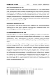 Drucksache 18/12850 – 272 – Deutscher Bundestag – 18. Wahlperiode aaa) Telecommunications Act 1984 Gemäß Section 94 des im Jahr 1984 verabschiedeten Telecommunications Act ist der zuständige Minister befugt, näher bestimmten Personen allgemeine Anweisungen zu erteilen, die ihm im Interesse der nationalen Sicherheit oder der Beziehungen mit auswärtigen Staaten oder Territorien erforderlich erscheinen. Gemäß Section 94 Subsection 8 Telecommunications Act besteht diese Befugnis unter anderem gegenüber Unter- nehmen, die öffentliche elektronische Kommunikationsnetze betreiben. Nach den Angaben des Sachverstän- digen Prof. Dr. Ian Brown ist allerdings wenig darüber bekannt, inwieweit von dieser weit gefassten Rechts- 945 grundlage tatsächlich Gebrauch gemacht wird. bbb) Security Service Act 1989 (SSA) Der Security Service Act aus dem Jahr 1989 (SSA) regelt die Befugnisse des Inlandsnachrichtendienstes Security Service (SS). Gemäß Section 2 Subsection 2 lit. a) SSA darf der SS Informationen gewinnen, soweit 946 dies zur Erfüllung seines gesetzlichen Auftrages notwendig ist. ccc) Intelligence Services Act 1994 (ISA) Der Intelligence Services Act aus dem Jahr 1994 (ISA) regelt die Befugnisse der britischen Nachrichtendien- ste Secret Intelligence Service (SIS) und Government Communications Headquarters (GCHQ). Gemäß den Generalklauseln in Section 2 Subsection 2 lit. a) ISA und Section 4 Subsection 2 lit. a) ISA dürfen beide Dienste Informationen gewinnen, soweit dies zur Erfüllung ihres jeweiligen gesetzlichen Auftrages notwen- 947 dig ist. Darüber hinaus ist auf Grundlage des ISA das Intelligence and Security Committee (ISC) des britischen 948 Parlaments geschaffen worden. Seiner ursprünglichen Konzeption nach war das ISC kein vollwertiger Parlamentsausschuss, sondern vielmehr ein aus Parlamentariern bestehendes Kontrollgremium, das durch 949 den britischen Premierminister besetzt wurde und ihm Bericht zu erstatten hatte. Zudem waren die Kon- trollbefugnisse des ISC beschränkt auf die Aspekte ordnungsgemäße Verwaltung, strategische Ausrichtung 950 und Ausgabeverhalten der Nachrichtendienste. Dementsprechend kamen britische Gerichte – im Rahmen einer Diskussion über die Verhörmethoden in den Gefängnissen von Abu Ghraib und Guantanamo Bay – zu 951 dem Schluss, das ISC lege mehr Wert auf Effizienz und Effektivität als auf Ethik und Recht. Im Lauf der Jahre befasste sich das ISC aber zunehmend auch mit den operativen Tätigkeiten der Nachrichtendienste und 952 kritisierte diese in ernstzunehmender Weise. 945) Schriftliches Gutachten des Sachverständigen Dr. Brown, MAT A SV-3/1, S. 1. 946) Vgl. auch Anhang zum Memorandum der britischen Regierung von Oktober 2014, MAT A UK-2/1, Bl. 9, 11. 947) Vgl. auch Anhang zum Memorandum der britischen Regierung von Oktober 2014, MAT A UK-2/1, Bl. 9, 11. 948) Schriftliches Gutachten des Sachverständigen Aldrich, MAT A SV-7/2a, S. 24. 949) Schriftliches Gutachten des Sachverständigen Aldrich, MAT A SV-7/2a, S. 24. 950) Schriftliches Gutachten des Sachverständigen Aldrich, MAT A SV-7/2a, S. 24. 951) Schriftliches Gutachten des Sachverständigen Aldrich, MAT A SV-7/2a, S. 19. 952) Schriftliches Gutachten des Sachverständigen Aldrich, MAT A SV-7/2a, S. 24.
