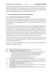 Drucksache 18/12850 – 276 – Deutscher Bundestag – 18. Wahlperiode – zu dem Zweck, in einem Notfall den Tod oder die Verletzung oder jeden Schaden für die körperliche oder geistige Gesundheit einer Person zu vermeiden, oder jede Beeinträchtigung oder Schädigung der körperlichen oder geistigen Gesundheit einer Person abzumildern. Schließlich enthält Section 22 Subsection 2 RIPA eine Öffnungsklausel, wonach der zuständige Minister durch Anweisung (order) weitere zulässige Erfassungszwecke bestimmen darf. Gemäß Section 22 Subsection 4 RIPA können Betreiber von Post- und Telekommunikationsdiensten zur Mithilfe bei der Erfassung verpflichtet werden. Section 24 RIPA regelt die finanzielle Entschädigung hierfür. 2) Commissioner Sections 57 bis 61 RIPA sehen eine Beaufsichtigung der nach dem RIPA bestehenden Überwachungsbefug- nisse durch drei eigens geschaffene Beauftragte (Commissioner) vor. Gemäß Section 57 Subsection 1 RIPA hat der britische Premierminister einen Interception of Communica- tions Commissioner (IoCC), gemäß Section 59 Subsection 1 RIPA einen Intelligence Services Commissioner (ISC) und gemäß Section 61 Subsection 1 RIPA – nach Konsultation der nordirischen Regierungsspitze – einen Investigatory Powers Commissioner for Northern Ireland (IPCfNI) zu ernennen. Für alle drei Positio- nen kommen nur Personen in Betracht, die bestimmte (hohe) richterliche Ämter bekleiden oder bekleidet 967 haben. Aufgabe aller drei Commissioner ist es, die Einhaltung bestimmter Vorgaben des RIPA zu beaufsichtigen. Der IoCC nimmt die Maßnahmen der Telekommunikationsüberwachung in den Blick, der ISC und der 968 IPCfNI befassen sich mit anderweitigen Maßnahmen. Der IoCC und der ISC berichten dem britischen Premierminister einmal jährlich und im Übrigen bei entspre- 969 970 chendem Anlass. Das britische Parlament erhält eine Kopie der jährlichen Berichte. Der IPCfNI berich- 971 tet einmal jährlich der nordirischen Regierungsspitze. Das nordirische Parlament erhält eine Kopie dieses 972 Berichts. Zur Erfüllung ihrer Aufgaben sind alle drei Commissioner befugt, sich der Unterstützung von Personen aus 973 dem Bereich bestimmter staatlicher Stellen zu bedienen. 3) Investigatory Powers Tribunal Section 65 Subsection 1 RIPA sieht die Einrichtung eines spezialisierten Gerichts, des Investigatory Powers Tribunal (IPT), vor. Dieses ist zuständig für näher bezeichnete Verfahren gegen Nachrichtendienste und de- ren Mitarbeiter sowie für Feststellungen über die Vereinbarkeit von Handlungen der britischen Nachrichten- 967) Section 57 Subsection 5 RIPA bzw. Section 59 Subsection 5 RIPA bzw. Section 61 Subsection 8 RIPA. 968) Section 57 Subsection 2 RIPA; Section 59 Subsection 2 RIPA; Section 61 Subsection 2 RIPA. 969) Section 58 Subsection 2 bis 5 RIPA; Section 60 Subsection 2 und 3 RIPA. 970) Section 58 Subsection 6 und 7 RIPA; Section 60 Subsection 4 und 5 RIPA. 971) Section 61 Subsection 5 RIPA. 972) Section 61 Subsection 6 und 7 RIPA. 973) Section 58 Subsection 1 RIPA; Section 60 Subsection 1 RIPA; Section 61 Subsection 4 RIPA.
