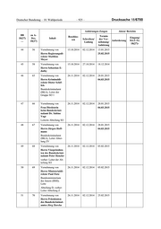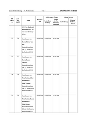 Deutscher Bundestag – 18. Wahlperiode – 923 – Drucksache 18/6700 Anhörungen Zeugen Akten/ Berichte BB zu A- Termin Beschlos- Eingang/ 18(27) Drs. Inhalt Schreiben/ der Ver- sen Anforderung MAT-Nr. … 18(27) Ladung nehmung/ 18(27)- Anhörung a) oder b) nein, warum nicht 2. Beiziehung sämtli- cher Akten, Doku- mente, in Dateien oder auf andere Weise ge- speicherte Daten und sonstiger sächlicher Beweismittel erfolgt, der (Vor-)Ermittlungs- verfahren wegen Tat- beteiligung an einer vom ehemaligen Bun- desministers des In- nern Dr. Hans-Peter Friedrich möglicher- weise begangenen Verletzung des Dienstgeheimnisses betreffen und die im Organisationsbereich der Generalstaatsan- waltschaft Berlin ent- standen oder in behör- derlichen Gewahrsam genommen worden sind 30 40 Vernehmung von 24.09.2014 25.09.2014 05.11.2014 Herrn Kriminalober- 15.10.2014 13.11.2014 rat Jörn Theissig 31 41 Vernehmung von 24.09.2014 25.09.2014 05.11.2014 Herrn Staatsanwalt Dr. Benjamin Krause 32 42 Vernehmung von 24.09.2014 25.09.2014 05.11.2014 Herrn Oberstaatsan- walt Rainer Frano- sch 33 43 Vernehmung von 24.09.2014 25.09.2014 13.11.2014 Herrn Staatsanwalt Dr. Joachim Schu- macher