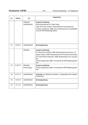 Drucksache 18/6700 – 934 – Deutscher Bundestag – 18. Wahlperiode Gegenstand Nr. Datum Art öffentlich/ Zeugenvernehmung nichtöffentlich Generalstaatsanwalt Dr. Frank Lüttig Antje Niewisch-Lennartz, Niedersächsische Justizministerin Christine Lambrecht, MdB, Erste Parlamentarische Geschäftsfüh- rerin der SPD-Bundestagsfraktion 43 18.06.15 nichtöffentlich Beratungssitzung öffentlich Zeugenvernehmung Dr. Hans-Peter Friedrich, MdB, Bundesminister des Innern a. D. Sigmar Gabriel, MdB, Bundesminister für Wirtschaft und Energie Dr. Frank-Walter Steinmeier, MdB, Bundesminister des Auswärti- gen Thomas Oppermann, MdB, Vorsitzender der SPD-Bundestagsfrak- tion 43 01.07.15 öffentlich Zeugenvernehmung (Fortsetzung) Thomas Oppermann, MdB, Vorsitzender der SPD-Bundestagsfrak- tion 44 01.07.15 nichtöffentlich Gespräch mit Michael Kretschmer, Vizepräsident beim Bundes- kriminalamt 45 14.10.15 nichtöffentlich Beratungssitzung 46 12.11.15 nichtöffentlich Beratungssitzung