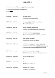 ANLAGE 3 Anmerkungen zum vorläufigen stenographischen Protokoll 19/86 (1 Untersuchungsausschuss der 19. Wahlperiode) Zeuge G S 184 (links) letzter Abs. Was ist das für uns? -) ersetze durch: Ist das was für uns? S 184 (rechts) erster Abs. und die also hat natürlich erst mal behalten. --> ersetze durch: Asservate S 184 (rechts) erster Abs. mit dem zuständigen Sachbearbeiter. ergänze: zuständigen italienischen Sachbearbeiter S 186 (links) dritter Abs. Informationsverdichtung durchgetrieben. -3 ersetze durch: Informationsverdichtung durchgeführt S 192 (rechts) erster Abs. , kann ich Ihnen nicht geben. --> im Sinne von: Sind mir nicht bekannt. S 192 (rechts) fünfter Abs. weil ich erst am 21. ist mir natürlich geläufig ergänze: weil ich erst am 21. zur BAO hinzugekommen war, ist mir natürlich die grundsätzliche Spurensuche geläufig S 194 (rechts) erster Abs. ; dafür gibt es auch nicht die Erhebung. -> im Sinne von: hierzu liegen auch keine Erkenntnisse vor. S 194 (rechts) fünfter Abs. sage mal, plausible Version S 198 (links) siebenter Abs. Mhm. -› im Sinne von: Zustimmung S 200 (rechts) fünfter Abs. wohnhaft — und......konnten ergänzen: - und es konnten Seite 1 von 3