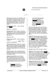 Vorläufiges Stenografisches Protokoll 19/97 1. Untersuchungsausschuss • fit Z.111' Schilderung von Montassar ist lebensfremd und wonach die Vernehmung und die kann eigentlich nur durch jemanden erfolgt sein, sich hieraus ergebende Verbin- der noch nie in Deutschland richtig war. Aber - dung zum „Terrorismus" A in der JVA aufwer- viel wichtiger - die Abklärung, die wir dann zu- ten würde. Insofern erscheint der sätzlich noch getroffen haben, auch dem Nach- Sachverhalt nach aktueller Bewer- vollziehen der Kommunikation zwischen den tung als möglicher Ausfluss einer beiden, - Prahlerei A s im Ge- fängnismilieu. Benjamin Strasser (FDP): ... hat ihn bestätigt, den A . Und ich verstehe nicht, wie Sie, wenn Sie das jetzt gerade geschildert haben, dass der ja eigent- Zeuge M. G.: - entspricht es. lich sehr glaubhaft da Angaben dazu gemacht hat, dass er eben kein Terrorist ist, sich auf diese Benjamin Strasser (FDP): Ja, okay. - Und dieser Vernehmung berufen und sagen: Terrorismus andere Typ, der — Also, zum Gesamtvorgang: Die würde diesen Mann aufwerten, und deswegen Vernehmung ist gelaufen, die Sie gerade geschil- gehen wir davon aus, dass das eine Prahlerei von dert haben. Und am 22. März 2018 meldet sich ihm ist. eben die JVA, - Zeuge M. G.: Nee, nee, ganz so ist es nicht. Der Zeuge M. G.: Mhni. Sachverhalt, den Montassar angegeben hat, der ist nicht über diesen im Nach- - diese Bemerkung Benjamin Strasser (FDP): - dass der Inhaftierte vom A abgeräumt, sondern es geht da- Livtufi (?) - rum, dass dieser Hinweis - - Oder anders: Man • fc muss die Situation sehen. Sie waren nicht dabei. Zeuge M. G.:-Ljudvie Z. Aber die Vernehmung ist gelaufen. Er hat sehr offen geredet. Er hat uns sämtliche Zugänge ge- Benjamin Strasser (FDP): - Zilec (?), ja, aus Bel- geben. Und dann sagt er - ich will nicht den grad, sich bei ihm gemeldet habe und angegeben 0 -Ton - aber: Das ist ja Wahnsinn. Wenn die habe, dass er einen weiteren Gefangenen kennen hier alle mitkriegen, dass das BKA da war wegen würde, der bei der Übergabe der Tatwaffen des mir. Terror ist super. - Also - - Anis Amri dabei gewesen sei. Das ist ja dann der Hinweis. Benjamin Strasser (FDP): Das sagt er zu Ihnen? Zeuge M. G.: Genau. Also, quasi postwendend. Zeuge M. G.: Sagt er zu mir. Er sagt so: Oh, denen Wir sind in Berlin, und kurze Zeit später kommt erzähle ich das. - Da sage ich so: Herr A , das-hiee Wir sind direkt auch wieder nach Mann- was Sie hier machen, ist Ihre Sache. Ich möchte .t94 heim gefahren, haben - nicht, dass Sie das irgendwie weitertragen. - Aber er ist 1,50 Meter und wiegt, ich sage mal, 60 Kilo. Benjamin Strasser (FDP): Ja, ja, aber davor - Und er ist halt auch ein redseliger Typ und hat Halt! -, davor machen Sie noch was anderes. das gesagt, so: Oh, wenn die das mitkriegen, das Bevor Sie diese zweite Vernehmung durchfüh- ja total toll und krass. - Das ist die Botschaft von ren, gibt es ja einen Vermerk von Ihnen zu die- wegen „Das wird ihn aufwerten". sein Vorgang oder Hinweis, wo Sie zum Ergebnis kommen, vor dieser zweiten Vernehmung - Zi- Benjamin Strasser (FDP): Aha, okay. - Und dann tat -: vernehmen Sie ihn. Und dann gibt der A zu, dass das die beiden zusammen nur gemacht Diesbezüglich korrespondiert haben, dass der eine nach Serbien abgeschoben A s Aussage im Nach- wird und er, also A., A , im Falle seiner gang zti seiner zeugenschaftlichen Vernehmung vorn 19.02.2018, 19. Wahlperiode Deutscher Bundestag - Stenografischer Dienst Seite 123 von 177
