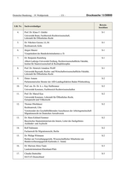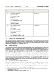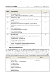 Drucksache 19/30800 – 132 – Deutscher Bundestag – 19. Wahlperiode Beweis- Lfd. Nr. Sachverständiger beschluss 18. Dr. Alexander Eisvogel S-3 Präsident der Bundesakademie für öffentliche Verwaltung 19. Sindyan Quasem, M.A. S-3 Wissenschaftlicher Mitarbeiter am Zentrum für Islamische Theologie, Münster 20. Alexander Ritzmann S-3 Brandenburgisches Institut für Gesellschaft und Sicherheit (BIGS) Radicalisation Awareness Network (RAN) der Europäischen Kommission Brüssel 21. PD Dr. Cornelius Courts S-4 Universitätsklinikum Schleswig-Holstein Institut für Rechtsmedizin Leitung Forensische Genetik 22. Dr. Ulrich Gerstel S-4 Ministerium für Inneres, ländliche Räume, Integration und Gleichstellung des Landes Schleswig-Holstein Landeskriminalamt – Sachgebiet 441 Sachverständiger für Daktyloskopie 23. Prof. Christian Friedrich Matzdorf S-4 Professur für Kriminalistik mit Schwerpunkt Kriminaltechnik Hochschule für Wirtschaft und Recht Berlin 4. Bild- und Tonaufzeichnungen Ton- und Filmaufnahmen sowie Ton- und Bildübertragungen bei der Beweiserhebung sind grundsätzlich nicht zulässig (§ 13 Abs. 1 Satz 2 PUAG). Jedoch kann der Untersuchungsausschuss mit einer Mehrheit von zwei Dritteln seiner anwesenden Mitglieder sowie mit der Zustimmung der zu vernehmenden oder anzuhörenden Per sonen Ausnahmen von diesem Grundsatz zulassen (§ 13 Abs. 1 Satz 3 und 4 PUAG). Hinsichtlich folgender mündlicher Gutachtenerstattungen bzw. -erläuterungen hat der Ausschuss einstimmig und mit Zustimmung der betreffenden Sachverständigen beschlossen, eine Bild- und Tonübertragung im Parlamentsfernsehen zuzulassen: Sitzung Sachverständiger Datum 6. Dieter Amann 19. April 2018 Prof. em. Dr. Dr. h. c. Kay Hailbronner Dr. Stephan Hocks Prof. Dr. Marcel Kau Thomas Oberhäuser Dr. Hans-Eckhard Sommer Rolf Stahmann Dr. Philipp Wittmann