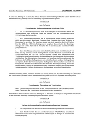 Drucksache 19/30800 – 146 – Deutscher Bundestag – 19. Wahlperiode Ferner hat der Ausschuss in seiner 132. Sitzung am 15. Juni 2021 zur Feststellung des Ergebnisses der Untersu chung (Dritter Teil des Abschlussberichts) gemäß § 33 PUAG mit den Stimmen der Fraktionen der CDU/CSU und SPD bei Stimmenthaltung der Fraktionen AfD, FDP, DIE LINKE. und BÜNDNIS 90/DIE GRÜNEN folgen den Beschluss gefasst: Beschluss 23 zum Verfahren Feststellung des Ergebnisses der Untersuchung (Dritter Teil) Der 1. Untersuchungsausschuss stellt den in seiner 125. Sitzung am 6. Mai 2021 beschlossenen Bewertungsteil in der Fassung auf Ausschussdrucksache 19(25)615(neu) als Berichtsteil zum Ergebnis der Untersuchung (Dritter Teil) gemäß § 33 Absatz 1 PUAG fest. Sodann hat der Ausschuss in seiner 132. Sitzung am 15. Juni 2021 zur Feststellung des Sondervotums der Frak tionen FDP, DIE LINKE. und BÜNDNIS 90/DIE GRÜNEN (Vierter Teil, A. des Abschlussberichts) gemäß § 33 PUAG mit den Stimmen der Fraktionen FDP, DIE LINKE. und BÜNDNIS 90/DIE GRÜNEN bei Stimmenthal tung der Fraktionen der CDU/CSU, SPD und AfD folgenden Beschluss gefasst: Beschluss 24 zum Verfahren Feststellung des Sondervotums der Fraktionen FDP, DIE LINKE. und BÜNDNIS 90/DIE GRÜNEN (Vierter Teil, A.) Der 1. Untersuchungsausschuss stellt das Sondervotum der Fraktionen FDP, DIE LINKE. und BÜNDNIS 90/DIE GRÜNEN in der Fassung auf Ausschussdrucksache 19(25)616(neu) als Sondervotum (Vierter Teil, A.) gemäß § 33 Absatz 2 PUAG mit der Maßgabe fest, dass die das Sondervotum tragenden Fraktionen bis Donnerstag, den 17. Juni 2021, 16 Uhr, Ergänzungen vorlegen können, wenn diese weder Informationen aus eingestuften Akten oder Protokollen enthalten noch rechtliches Gehör auslösen. Weiter hat der Ausschuss in seiner 132. Sitzung am 15. Juni 2021 zur Feststellung des Sondervotums der Fraktion der AfD (Vierter Teil, B. des Abschlussberichts) gemäß § 33 PUAG mit der Stimme der Fraktion der AfD bei Stimmenthaltung der Fraktionen CDU/CSU, SPD, FDP, DIE LINKE. und BÜNDNIS 90/DIE GRÜNEN folgen den Beschluss gefasst: Beschluss 25 zum Verfahren Feststellung des Sondervotums der Fraktion der AfD (Vierter Teil, B.) Der 1. Untersuchungsausschuss stellt das Sondervotum der Fraktion der AfD in der Fassung auf Ausschussdrucksache19(25)617(neuneu) als Sondervotum (Vierter Teil, B.) gemäß § 33 Absatz 2 PUAG mit der Maßgabe fest, dass die das Sondervotum tragende Fraktion bis Donnerstag, den 17. Juni 2021, 16 Uhr, Ergänzungen vorlegen kann, wenn diese weder Infor- mationen aus eingestuften Akten oder Protokollen enthalten noch rechtliches Gehör auslösen.