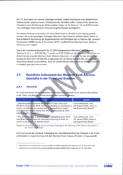 Am 19. April haben wir weitere Unterlagen erhalten, welche Nachweise einer detaillierteren Validierung der angenommenen Schätzparameter darstellen sollen. Aufgrund des genannten Charakters einer Schätzung der Zahlenangaben haben wir für diese am 19. April 2020 erhalte nen Unterlagen keine weiteren Untersuchungshandlungen durchgeführt. Vor diesem Hintergrund konnten uns keine Übersichten zu Kunden zur Verfügung gestellt werden, die zu den jeweiligen Stichtagen Merchant Cash Advance erhalten haben. Daher ist eine detaillierte Beurteilung der Angemessenheit und Richtigkeit der im Rahmen der „Investor Presentation Q3/9M results, 6. November 2019" veröffentlichten Merchant Cash Advance- Volumina nicht möglich. Das in der Investorenpräsentation für Ql 2019 ausgewiesene Merchant Cash Advance- Volumen (i. H. v. EUR 400 Mio.") weicht um EUR 10 Mio von der M icrosoft’Excel-Datei zur Zusammensetzung des Merchant Cash Advance Volumens , in welcher für das betrejfende Quartal ein Wert von EUR 390 Mio ausgewiesen ist, ab. Dieses sdit nach den uns erteilten Auskünften darauf zurückzuführen, dass die veröffentlichten Merqhant-Cash Ad\mnce Voluhrti- na lediglich grob gerundet wurden. , \ 2.3 Rechtliche Zulässigkeit des Mensh ^ t €,ash Advance- Geschäfts in der Tüdflii^nd Brasihi^n 2.3.1 Vorwürfe Im Zusammenhang mit rechtlichen ^lässigkeit o*s Merchant Cash Advance-Geschäftes in der Türkei und Brasilien wurde die folgenden V orw ü i^e ^ob e n: „ Deloitte audit^accounts för.Wirecard Turkey showjust mca-mathematik. com, €2.3M in revenae for 2018, and no net lending to merchants is 23. August 2019: Letter to shown. In addithn, an opinion frorn a naspected and experi- the Supervisory Board^® enced Turkish lawyer States that MCA as described by Wire- carcfiß illegal in ^urkey. i "The lack.of len'ding in Brazil was also highlighted given Wire- mca-mathematik. com, card Brazil did not have the necessary acquiring license, so 15. Januar 2020: Letter to could not lend ffom its balance sheet". the Supervisory Board^^ Tabelle 24: VorwürfeTn Bezug auf die rechtliche Zulässigkeit des Merchant Cash Advance-Geschäfts in der Türkei uhd Brasilien Demnach wurde die rechtliche Zulässigkeit der Geschäftsaktivitäten der Wirecard in der Türkei und Brasilien in Zusammenhang mit dem Merchant Cash Advance-Produkt in Frage gestellt. https://www.mca-mathematik.com/static/pdf/letter-230819.7997da22.pdf, abgerufen am 5. November 2019 https://www.mca-mathematik.com/static/pdf/brazil-update.64690516.pdf, abgerufen am 18. April 2020 Anlage 1/105 I Wirecard AG | Bericht über die unabhängige Sonderuntersuchung 27.4.2020 - streng vertraulich | 10.020925-16039304