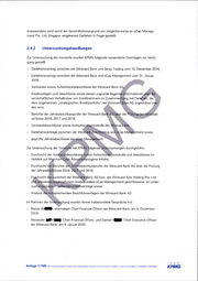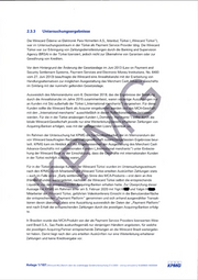 2.3.2 Untersuchungshandlungen Zur Untersuchung der Vorwürfe wurden KPMG folgende wesentliche Unterlagen zur Verfü gung gestellt: - Screenshots für die Abwicklung einer beispielhaft ausgewählten Kreditkartentransaktion durch die Wirecard Ödenne ve Elektronik Para Hizmetleri A.5., Istanbul (Türkei), - Nachweise über beispielhafte Zahlungsein- und -ausgänge der Wirecard Bank AG für die inn Zusammenhang mit dem MCA-Geschäft stehenden originären Zahlungsverpflichtungen der Wirecard Türkei in Form von SWIFT-Nachrichtensätzen sowie zusammenfassendes Memorandum einer Rechtsanwaltsgesellschaft vom 6. Dezember 2019 mit den wesentli chen Ergebnissen einer im Zeitraum Juli bis September 2015,erfolgten anwaltlichen Bera tung in Bezug auf die Zulässigkeit des von der Wirecard iri sier Türkei betrieb|nen Ge schäfts mit „MCA-Bezug". / Zur Untersuchung des Vorwurfs hat KPMG folgende Unteifeuchungshandlpngen isL dufchgeführt: - Untersuchung der von der Wirecard AG im liiltersuchun^sieitraum veröffentlj£^hten Ge schäftsberichte und weiterer Publikationen Hinblick aufVIercliant Cash^Aävance- bezogene Inhalte, \ ^, ‘ \ - Durchsicht der von der Wirecard AG im Untersii^hung^zeitraum erstellten Vorstandsbe schlüsse sowie Aufsichtsratsprötokolle und -besdblüsse \fn Hinblick auf Merchant Cash Advance-bezogene Inhalte, - \ - Durchsicht des zusammenfassend^n Memömr^dums'ißiner Rechtsanwaltsgesellschaft vom 6. Dezember 2019 mit den wesentlidlen Ergebnissen einer im Zeitraum Juli bis Septem ber 2015 erfolgten anwaltlichen Beratung in Bezug auf die Zulässigkeit des von der Wire card in der Türkei betriebenen Geschäfts nhlt „MCA-Bezug sowie - Beurteijung der Nachvolizjehbarkeit der in Bezug auf die Zulässigkeit der Merchant Cash Advance-Geschäftsaktivitäten der Wirecard in der Türkei eingeholten anwaltlichen Bera tung.; Im Rahnien der Untersuchung wurden ferner insbesondere Gespräche mit: - Jan M f l B I I Chief Operating Officer der Wirecard AG, am 21. November 2019, - Stefan E S « Head of Accounting der Wirecard AG, am 25. November 2019, am 27. Januar 2020 sowie am 5. Februar 2020, - Martin Gregor F| K Vertreter des Abschlussprüfers EY Audit, am 25. Novenhber 2019 sowie - Yigit KfBPund Yalgin Mitarbeiter der Wirecard Ödeme ve Elektronik Para Hizmetle ri A.5., Istanbul (Türkei), am 11. Februar 2020 geführt. Im Rahmen dieser Gespräche erhaltene, für die Untersuchung relevante Informationen wur den bei der zusammenfassenden Darstellung der Untersuchungsergebnisse berücksichtigt. Wirecard AG | Bericht über die unabhängige Sonderuntersuchung 27.4.2020 - streng vertraulich | 10.020925-16039304 | Anlage 1/106